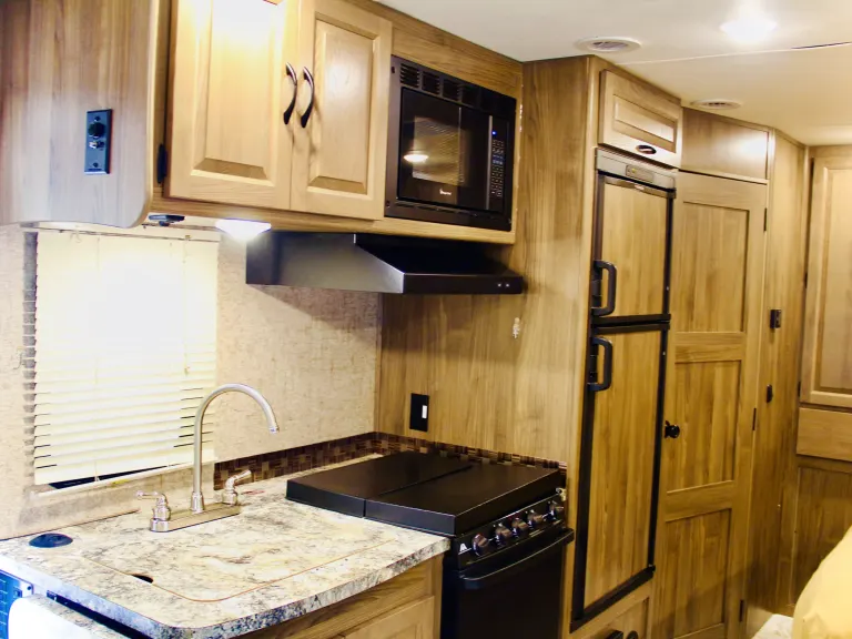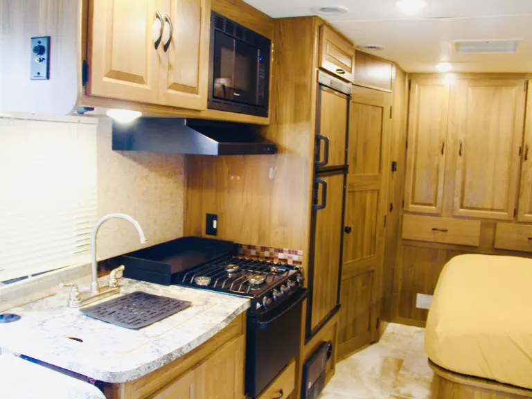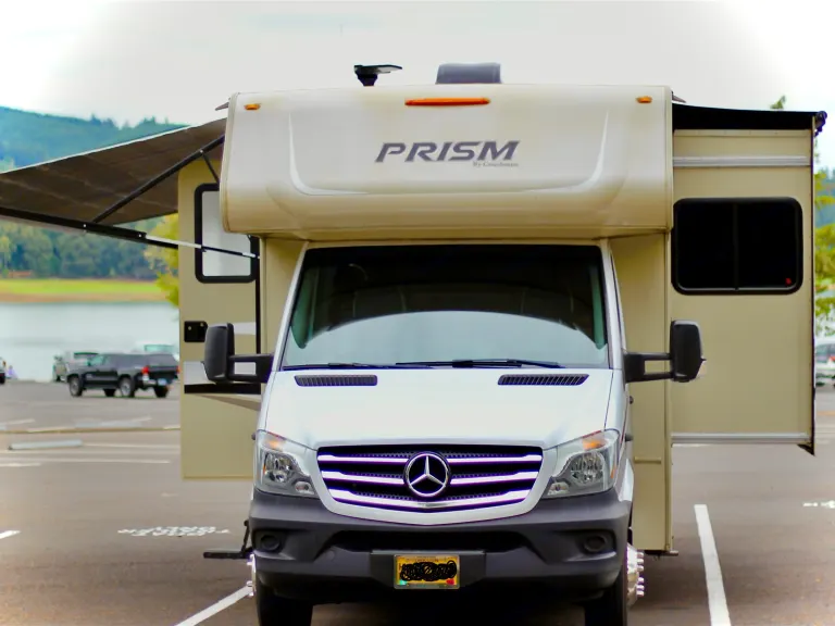 Coachmen Prism 2200FS is a Mecedes-Benz-Sprinter Class C RV. Fully loaded with Kitchen tools, cookware, Propane Grill (We even provide the propane tank), 3 clean towels, and bedding for 6 people (2kids). It has 1 slide out, power awning with outdoor TV along with music system and Onan 3200w Generator. Indoor TV with dinette which can become bed for two kids and a queen bed and bunk over cab. It also hot water heater and 11 gal propane tank. Kitchen has double stainless sink and 3 burner cooktop and 1 convection burner with a convection oven for baking. Fridge has good size freezer. Cabin AC blows cold and will heat the coach even in temps as cold as 35 degrees outside. For colder temps has an onboard propane heater and tank heaters. A true 4 season