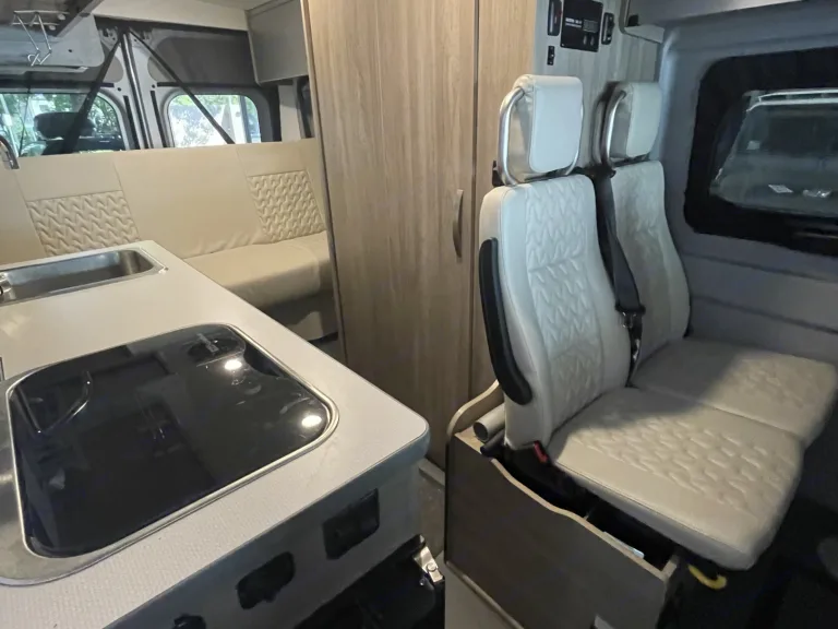 This is the Benchback version of the Winnebago Solis P. Not as much storage but it can legally carry 2 more passengers for a total of 6 passengers, sleeps 4 comfortably. All the amenities you need and more. This van has low mileage and is great for any adventure.