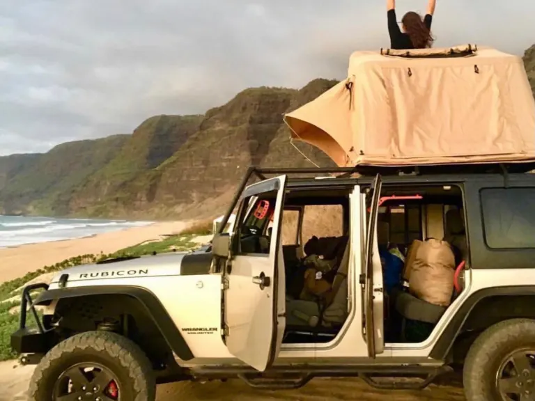 Lifted Jeep Wrangler with camper pop up tent on top !What's includedBeach cooler , beach chairs , hot burner