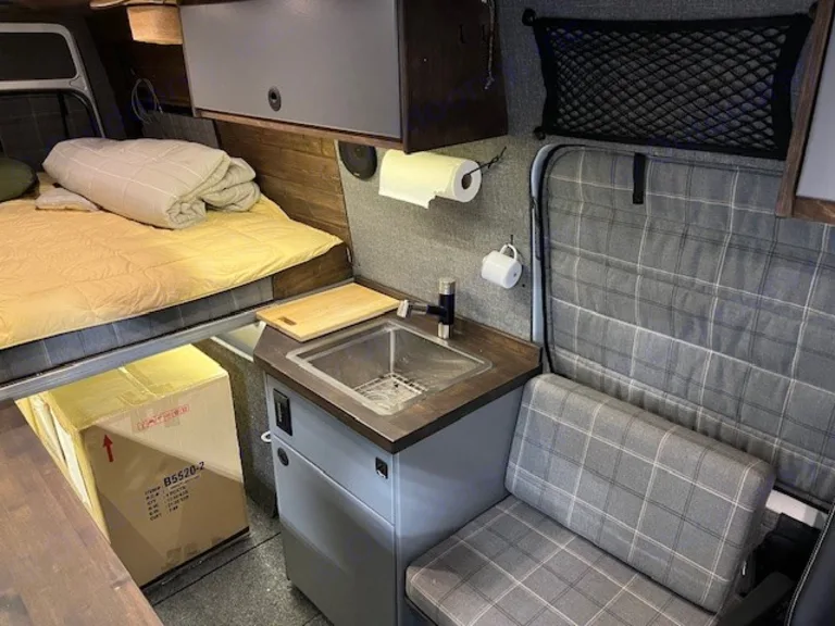 Spacious Interior: There’s plenty of room to lounge and relax in comfort. The van’s thoughtfully designed interior provides ample space for unwinding after a day of adventure.