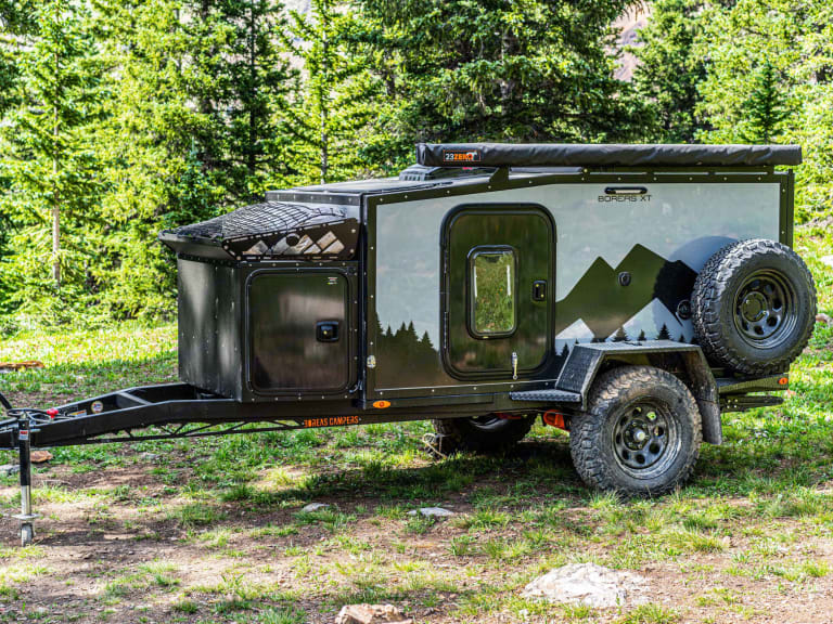 Boreas Series Trailers – Designed and built by Boreas Campers, Colorado’s top camper trailer manufacturer, are true off-road and off-grid campers. Built to last a lifetime, each Into The Wild Overland off-road camper is a custom-build and hand-crafted to supply you with everything you might need to make the best of your next camping trip. The off-grid capabilities and mechanics of the camper make any backcountry easily accessible and ready for new adventures all year round. We design overland campers capable of taking on a huge range of driving conditions: muddy, icy, rocky, or sandy terrains.The 2022 Boreas XT is a completely turnkey backcountry basecamp featuring an all composite and aluminum cabin (NO Wood!). With top-of-the-line Cruisemaster suspension, oversized tires, and up to 20 inches of ground clearance the only limit to this trailer is the vehicle towing it. 30 gallons of on-board water, 100 watts of solar power, and sleeping for two makes this camper ready for any adventures. The camper also comes with the ARB 4-wall room enclosure that attaches to the ARB awning to allow more sleeping options/sheltered space.The galley kitchen comes fully equipped with a sink, and two burner stove and a 60 liter Truma 12v fridge/freezer. The solar kit will keep your deep cycle AGM battery topped off during extended off grid adventures. Bring all your gear and accessories with ample storage in the cabin and kitchen cabinets. With a dry weight of 2250 pounds and electric brakes it is easily towed by most vehicles. Venture out into the wild in a high-end way!We will provide bedding and linen, cooking utensils and cutlery, basic cleaning supplies, full propane tank, full water tank and a 30-min walkthrough at the time of pick-up. What's includedThe rental Boreas XT will come with bedding (sheets, blankets, pillows), cooking utensils, pot and pans, crockery, dishwashing and cleaning supplies, ground sheets, 4-wall awning room enclosure, a pop-up shower tent and an operating manual.The batteries of the Boreas will be fully charged when you come pick it up and the propane and water tank filled up. The trailer is equipped with an air conditioner; however to use it, you will need to connect to shore power or a 2000w generator. We have a generator that you can use should you need it.The shore power cable will be provided for you to charge your trailer as well, which will come in handy if you're parking in a RV park, or a camping spot with electricity. A garden hose will also be provided for you to fill up water during your trip if needed.The hitch for towing will be provided and installed on your vehicle. All you need is a blank receiver, a 7 pin trailer connection and a brake controller. If you have a ball hitch, you can leave it at home.RecommendationsRenting this 2022 Boreas XT camper is a great way to test out if it works for you if you're leaning towards purchasing. Other things to noteThe water system is not useable in freezing temps. If you’re taking the camper out in the winter with overnight freezing temps, we will provide you with gallon jugs for dishes.