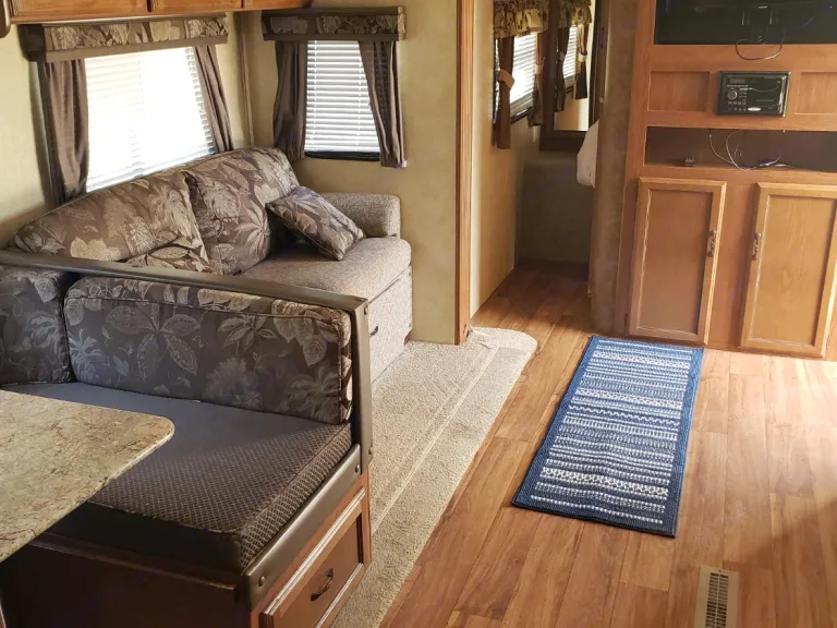 This beautiful RV offers a great layout nice finishes. This RV was design to accommodate multiple adults or children with plenty of space and extra perks. Relax under the awning or when it is time to go inside, fall asleep to music or a movie with a great interior sound system and TV. All of our RVs are professionally clean after each use and fresh linens are placed on the beds. All add-ons, equipment and tools are tested and ready for optimal use. Book this RV knowing your getting 5 star quality.