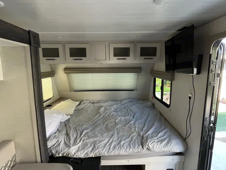 Get ready to unleash your inner explorer with the Forest River No Boundaries 19.8! This compact and adventurous travel trailer is your ticket to unforgettable outdoor escapades. Equipped with everything you need to conquer the wild, this rugged RV is perfect for those who seek thrills and want to get off the beaten path. With its clever design and versatile features, the No Boundaries 19.8 offers a fun and exhilarating rental experience that will leave you craving more. Explore uncharted territories, soak in stunning landscapes, and make memories that will last a lifetime. And if you’re looking for a comfortable getaway to a campground, it fits right in with all of the hookups and the ease of parking. Book your adventure now and let the No Boundaries 19.8 take you on the journey of a lifetime! What's includedWe’ll include the necessities to get your trip off to a great start. Fresh sheets and blankets are included. For your time outside, it will come with 2 folding chairs, a griddle, and a small table.RecommendationsThis camper is great for off the grid adventures, so if you have a spot picked out you want to go all you really need to do is fill up with water and take off. If this is your first trip, I recommend easing into it by getting a campsite with hookups. Just a disclaimer. If you’re planning to go off grid, you need to have a generator.I’m happy to make recommendations through the booking process if you’re unsure. We get a lot of joy out of this camper and you will too.Other things to noteWe’re happy to help make this a great experience for you. Just remember that this camper brings a lot of joy to our family and we’d appreciate it if it was returned in one piece. That being said, accidents happen and we understand.-Pets are welcome! Hair happens and dirty feet happen. It’s a simple sweep into the central vac!