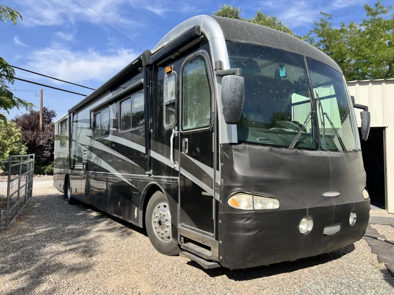 Fleetwood Revolution Class A RV for Rent in Reno - This is offered with delivery only for the ultimate pre-set adventure. Set-Up Included!Experience luxury and comfort on the road with our Fleetwood Revolution Class A RV, now available for rent in the Reno/Tahoe area. This top-of-the-line motorhome offers the perfect blend of elegance, space, and high-end amenities, making it an ideal choice for family vacations, or a relaxing getaway in the great outdoors.Key Features:- Spacious Interior: The Fleetwood Revolution boasts a roomy interior with ample living space, featuring high ceilings and a well-designed floor plan. The slide-outs expand the living area, providing additional room for relaxation and entertainment.- Sleeping Accommodations: Comfortably sleeps up to 6 guests with a master bedroom featuring a luxurious queen-sized bed, a convertible sofa bed, and a dinette that transforms into a cozy sleeping area.- Fully Equipped Kitchen: Prepare delicious meals on the go with a fully equipped kitchen that includes a refrigerator, microwave, oven, stove, and plenty of counter space. The kitchen also comes stocked with essential cookware and utensils.- Entertainment Options: Enjoy your favorite shows and movies on the flat-screen TV with a DVD player and surround sound system. The RV also features a satellite dish and Wi-Fi capability for your convenience.- Bathroom Amenities: The full bathroom includes a spacious shower, sink, and toilet, ensuring you have all the comforts of home while on the road.- Climate Control: Stay comfortable in any weather with the powerful air conditioning and heating system.- Outdoor Living: The RV features an outdoor awning, perfect for creating a shaded outdoor living space. Outdoor speakers and lighting make it easy to enjoy evenings under the stars.- Storage Space: Ample storage compartments both inside and outside the RV provide plenty of space for all your belongings and gear.- Convenience: Delivered and set up at your desired location within the Reno area, allowing you to start your vacation stress-free. No need to worry about driving or parking this large motorhome.Rental Details:- Delivery Only: The RV will be delivered and set up at your chosen campsite or location