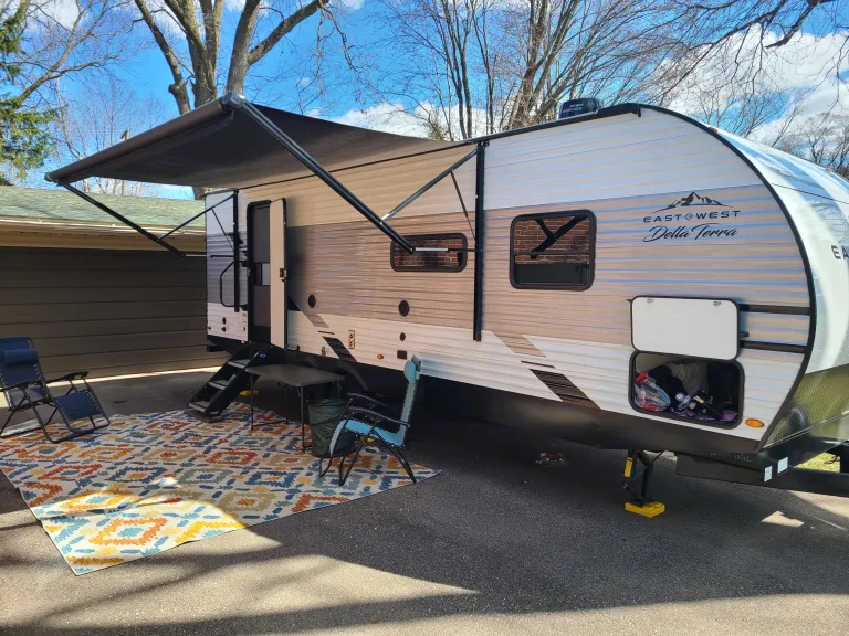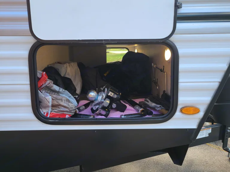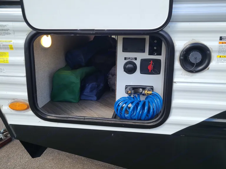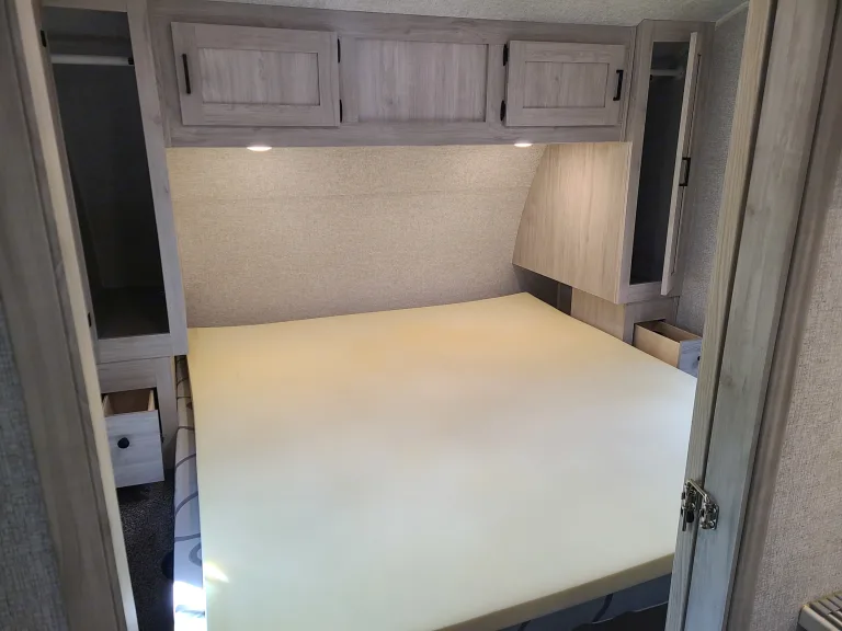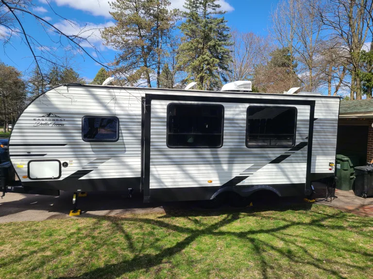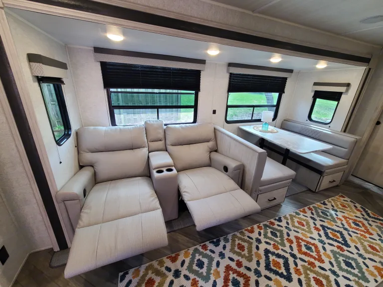 Beautiful, Clean, and Ready-to-roll, this 32' 2022 Travel Camper easily sleeps 4-6. Upgraded options include Reclining Lounge Chairs, a Fireplace, a 40" TV, a King-Size Bed, a large bathroom, and a large storage pantry for all your storage needs. It is pet-friendly and ready to accommodate any camping trip in luxury.***Delivery Only***What's includedAll items are subject to renters' wishes. Items included are shown in the photos (outdoor lounge chairs, folding tables, foldable trash bins, etc.) along with plastic ware, a coffee maker, a toaster oven, and multiple cooking utensils. Unless requested, all items will be removed. Other things to noteWe treat our camper with the utmost respect. We appreciate the same from any renter. We welcome doggos, and we welcome smokers. We request you do not smoke inside the camper. Please be mindful of the doggos with what they track inside.