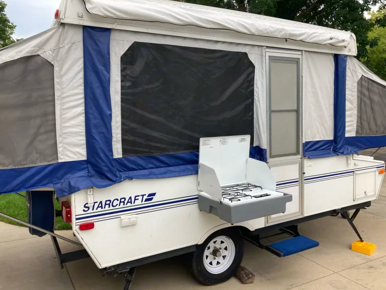 Don't worry if you are new to towing a tent trailer.This 2001 Starcraft folding camper is perfect to tow behind smaller vehicles. If you vehicle can handle up to 2000 pounds you’ll be well on your way. (see other requirements)‘Lil Betty has everything you’ll need to enjoy a weekend of camping without leaving all the comforts of home behind.Don't like camp cooking? Get a site with electricity and plug in the microwave.There is nothing more enjoyable than a cup of coffee next to the fire on a cool camp morning. Forget the camp host coffee and brew your own - 'Lil Betty has a plug in coffeepot. It’s a drip coffee pot and we have filters so just bring your favorite ground coffee.You don't have to camp like a Marine with 'Lil Betty.What's includedCoffee pot, and refrigerator (you'll need to have an electrical site).Two camp chairs. Not real fancy but they’ll work.Roadside Kit (tire pump, jack, wrench, first aid kit, small tool kit, spare tire, fire extinguisher)Store your items in 'Lil Betty's front compartment. This unique feature will provides a place to pack a few more comforts from home.The cost of propane is included in the rental price.Give 'Lil Betty spin and you'll be back again!RecommendationsWhitewater State Park - 30 miles from pick up siteThis our favorite camping spot close to