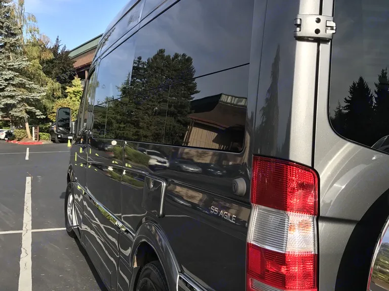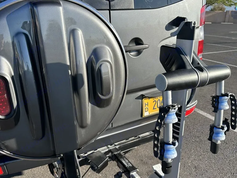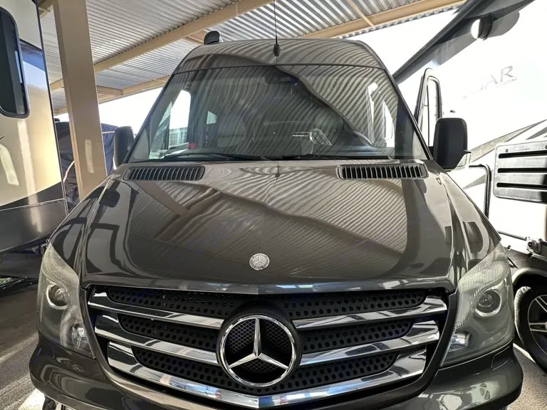 A gorgeous charcoal grey metallic short Sprinter(20') that outperforms for unplugged camping. With 3 solar panels and dual inverters, you have power for all camping activities when you need it.
