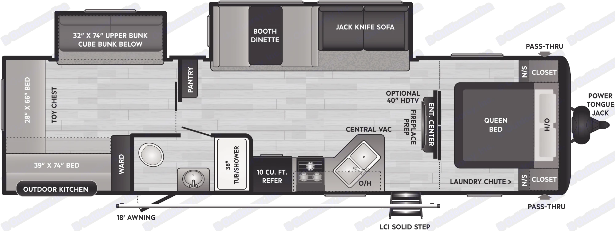 This camper has all of the space and amenities that you did not know you needed. Tow this to your campsite with your 250/2500 or heavier truck or have us delivery it and set it up for you.