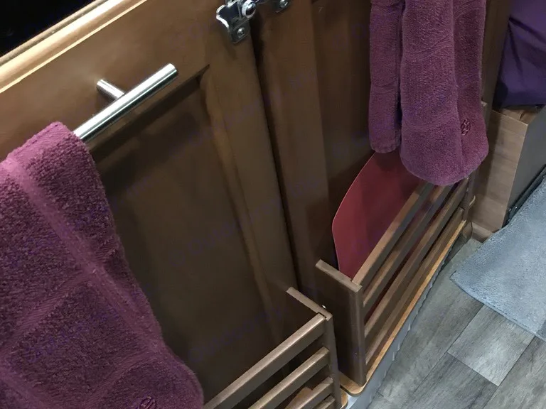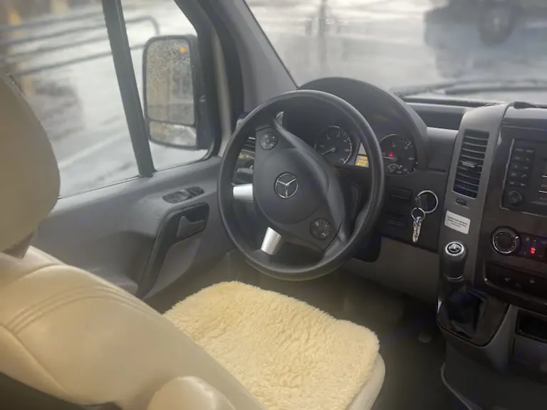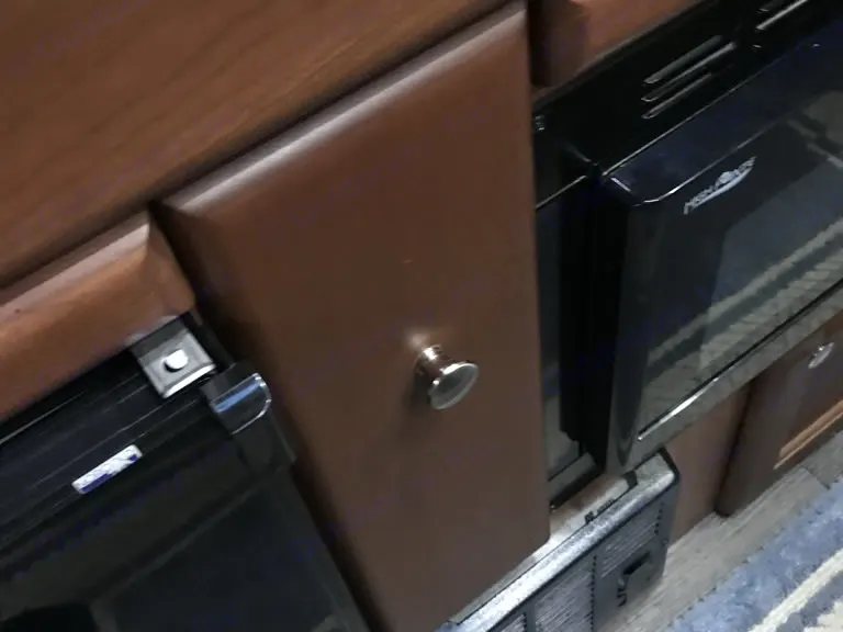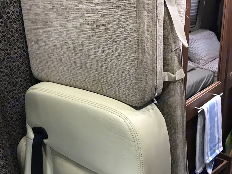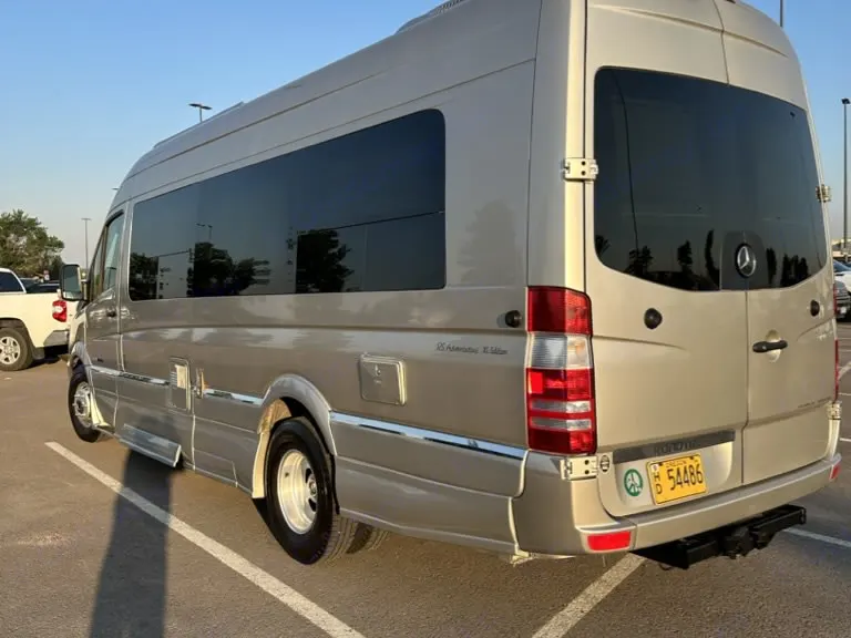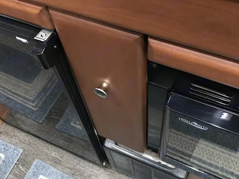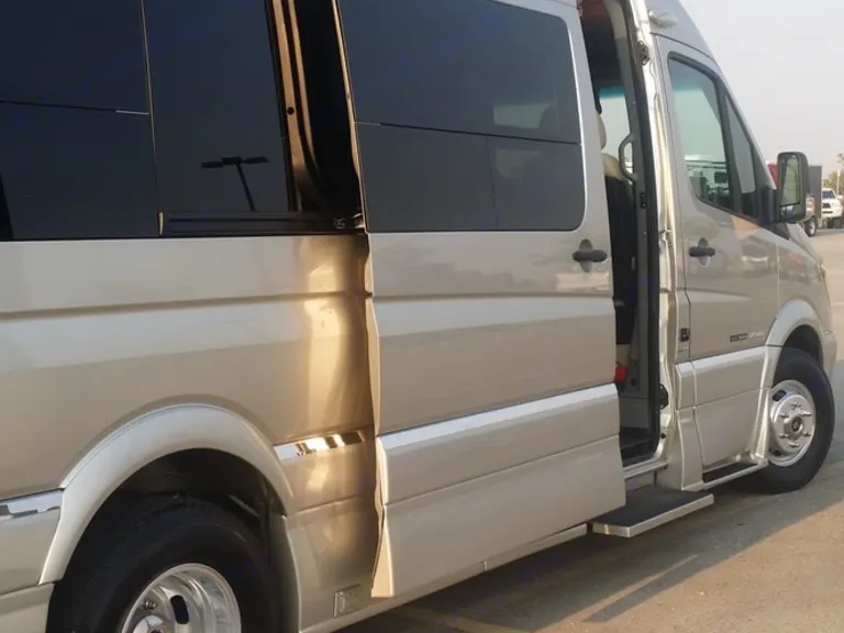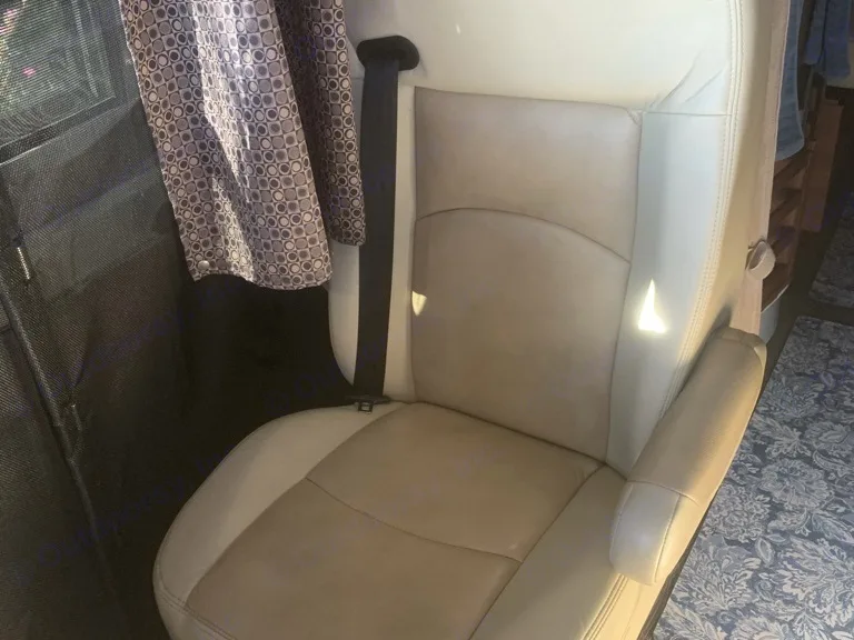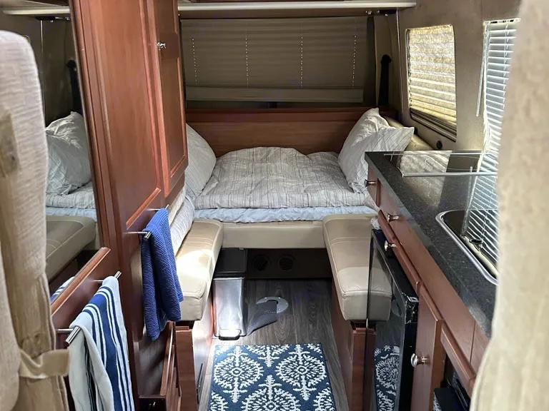 Beautiful champagne beige metallic with two tone tan interior; organic linens and towels, solar refrigeration; propane heating and cooking, toilet and shower inside cabinet closet mid rig; across from the cookline which has a convection oven/microwave, two burner cooktop, and cabinetry all the way around filled with high end essential equipment and tools