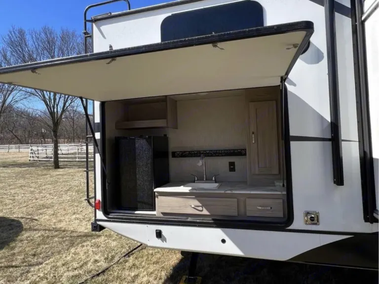 Outdoor kitchen area is perfect to sit around Other things to noteNo smoking inside RV