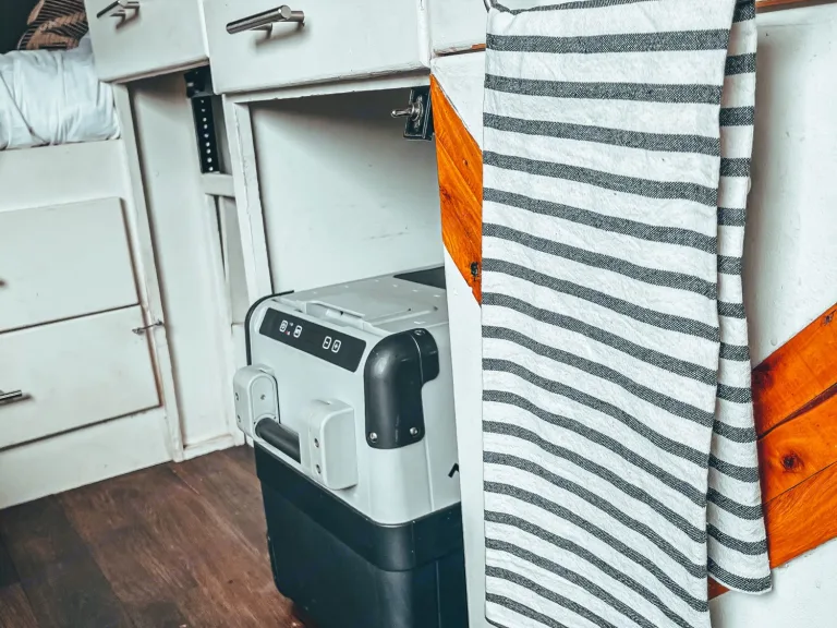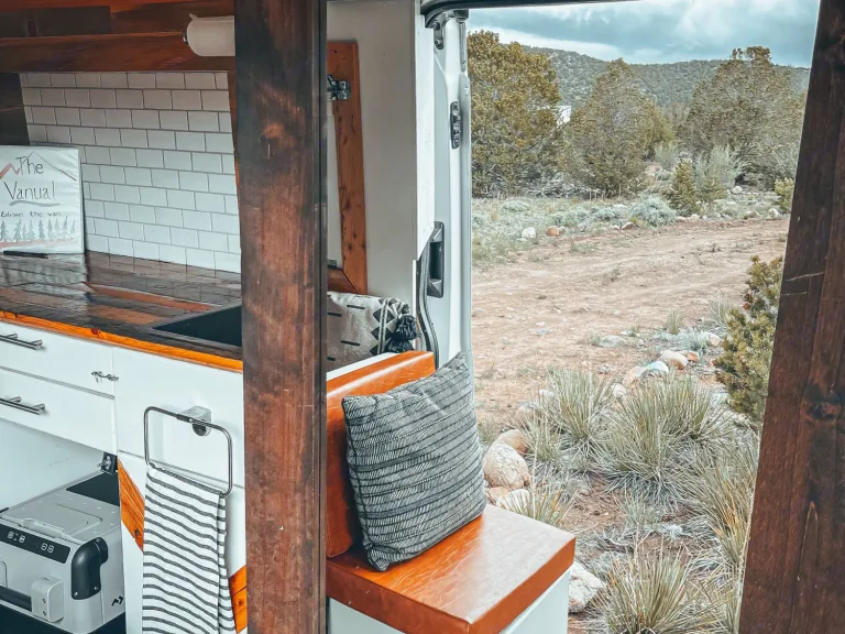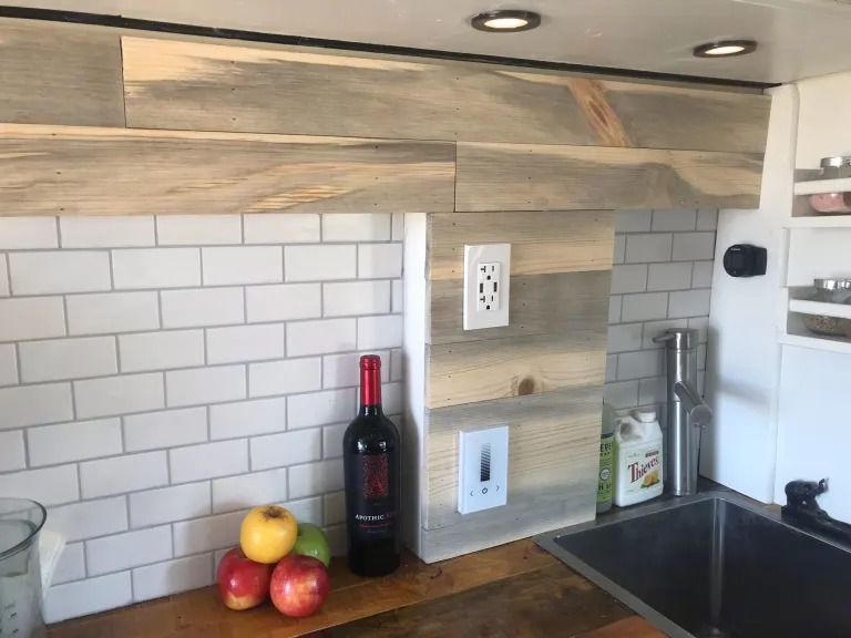 -Kitchen sink with 6 gallons of fresh/6 gallons of grey water-extra six gallons stored in back if needed.