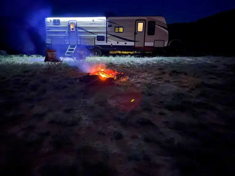 This 2019 Keystone Hideout has all the features for an awesome adventure plus luxuries not found on many other trailers. There is and outdoor kitchen with a mini fridge. It has an outdoor fireplace that you can cozy up to even when there is fire restrictions. It has oversized bunk beds. Lots of storage. There is plates, cups bowls, and silverware for up to 10. Queen sized comfortable mattress. Dinette and couch fold to sleep additional guests. Porcelain foot flush toilet. LCD TV with streaming service when in a location with wifi. Indoor fireplace. Hotdog roasting sticks. Spacious bathroom. This beautiful hideout is equipped with the cold mountain package which makes it perfect for an extended season camp trailer for early spring and late fall. This is an excellent option for family trips, family reunions, and even a great place to stay for the hunting season. This is also an excellent alternative for many of the the events in Sevier valley when hotels are booked up. This trailer is located in central Utah and is a great home base for Utahs fantastic parks Zions, Bryce, Moab, Canyon Lands, Arches, Capitol Reef. We can deliver for additional delivery fee. We are located by several camp grounds and the Blackhawk arena and can deliver to those locations as well. Featured as outdoorsy owner of the week September 1 2020.What's included4 camp chairs available for use. Cornhole and tic tac toe. Board games. cookware. Tableware for up to 10. DVD's. Fresh linens on Queen bed. pillows. delivery available to select location for an additional fee. Locations are Fish Lake, Bryce Canyon, Maple Grove, Koosheram area, Palisades Reservoir, Piute Reservoir, Otter Creek Reservoir, Blackhawk arena, Yuba Reservoir. Other things to noteNo off road use. No smoking or drug use in trailer or around doors or windows. Use of awning at own risk of damage to awning occurs you will be responsible for repair or replacement. No festivals.