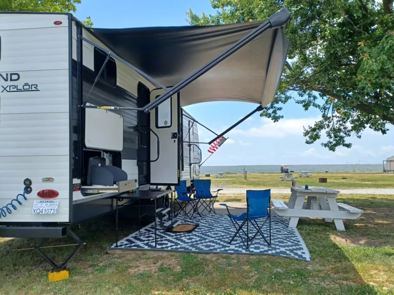 Decked out for your next adventure! 2023 Grand Design Transcend 321BHS. This camper has a queen bed, 4 single size bunk beds, a fold out couch (full size bed) and U- Dinette (that converts to another full size bed). Sleeps 10. 1 1/2 bathrooms. Master bedroom has a brand new mattress, plenty of storage and USB outlets throughout. Beautiful open floorplan and living area has U-Dinette Sleeper, plush leather chairs. Indoor kitchen has a microwave, refrigerator/freezer, stove with 3 burners and oven. Kitchen comes fully stocked with dishes, utensils and small Keurig coffee maker. Smart TV with bluetooth enabled indoor and/or outdoor zoned speakers. Large awning for shade with LED lighting, 4 outdoor camping chairs, outdoor kitchen with mini fridge and small griddle. You will need to bring toiletries, pillows, linens for U-Dinette sleeper and fold out bed k-cups and food. We will drop off/pick up at renter's location in MD/VA/DE peninsula for a fee. NO dry camping. The camper comes equipped with linens (fitted sheet and top sheet for bunk beds and queen only). Site must be for 36 ft with 1 slide on passenger side. Delivery OnlyWhat's includedLinens for the Queen bed and the bunk house beds, 4 towels and 4 Washcloths dishtowels dishcloths 4camping chairs small table for outside patio rug. Keurig coffee maker 4 coffee cups, pots and pans cooking utensils dish setting for 6 paper plates bowls cups napkins towels small hygiene items (shampoo conditioner toothpaste soap toothbrush.RecommendationsBring food Keurig cups and enjoy your camping experience to the fullest. And above all Happy Camping! Other things to noteNo smoking in camper, clean up upon leaving leave dirty towels and wash/dish rags in the shower floor. Empty black and grey tank (a charge will be charged if it isn't done)