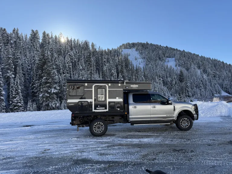 This is a 4 Wheel Camper Hawk Plus flatbed model, designed to go where large RVs can’t — while still offering heat, air conditioning, hot water, and a real toilet.Highlights Renters Love