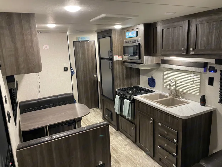 Trash can and trash bagsOther things to noteWe know just how hard and time consuming it can be to set up and tear down a travel trailer. We are ONLY offering delivery at this time within 50 miles. The only outside radius location we will delivery to is Canyon Lake. Delivery is included in the price so you don't need a truck. We will meet you at your desired camping location set up the trailer for you and come back to tear it down when you’re ready to depart. RV site must have full hook up. Water, Electricity and Sewer