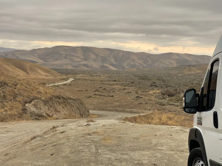This Van has all the essentials for a fun camping trip without the extra fluff, saving you money while you explore the great outdoors. Perfect for camping at National Parks, State Parks or even free BLM/disbursed campsites. Has a comfy bed, swivel seats, 12V fridge to keep your food fresh. Outdoor shower with instant hot water. Also has solar power to keep the Starlink internet, fridge, lights and phones running.