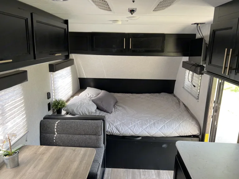 This brand new small camper is perfect for a small family with bunk beds. What's includedComes completely stocked with kitchenware, clean linens, chairs, propane fire pit, outdoor table, and grill