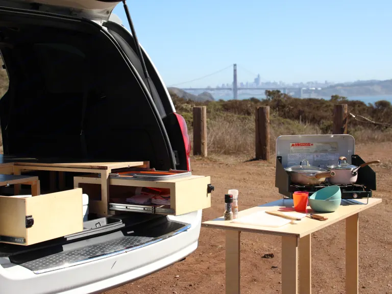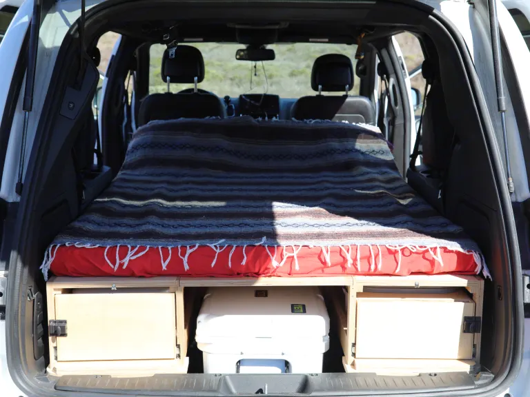 Welcome to our little Gypsy Caravan!Our modified van is a perfect way to jump in and simply depart to your destination! Enjoy the outdoors with as many amenities you’d get in most bigger camper vans without the hassle of being in a large vehicle.Our van is compact and can carry / sleep two people comfortably. We built a modular system in our van to create storage for your clothes as well as empty space for extra luggage. We have a kitchen unit that pulls out in the back with plenty of cutlery, cooking equipment, essential pans, dishes, and a collapsable sink. There is plenty of storage for your fruits, vegetables, dried food like pasta or rice under the kitchen drawers. We also have a Yeti Tundra 35 that keeps whatever needs to stay fresh for a few days with a little bit of ice. With our modular system, one part of the bed can become a bench that you can use outdoors and another part can become a table (with foldable legs). We have an awning you can pull out for extra sunny days.There is a cargo rooftop carrier for you to store any extra luggage (This is an add-on). We often store our outdoor stuff in it (hiking shoes, grill/bbq equipment, wood for fires, backpacks) to keep our indoor space clean and cozy.Sleeping is an absolute pleasure in this van. Our rollable memory foam mattress is very comfortable and we can provide sheets and bedding for your cozy sleep (there are some fairy lights inside if you’d like light). We have a custom sunshade specifically made for our vehicle that fits easily into every single window. This makes our sleeping situation pitch black.You’ll find most things that you need in our van including camping chairs, yoga mats, fire equipment, and etc. (For yoga mats, fire equipment, please ask us at pickup). Stay charged with the many USB outlets in the car as well as a 3-prong plug if you need to charge anything such as a laptop.Please add ‘Half Day’ in the ‘Add-On’ if you want to Pick-up before 10AM or return after 4PM.What's includedOur little Gypsy Caravan comes equipped with everything you need on your journey!For sleeping: