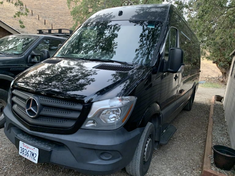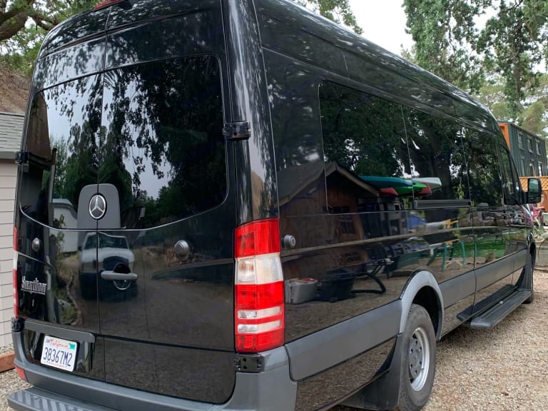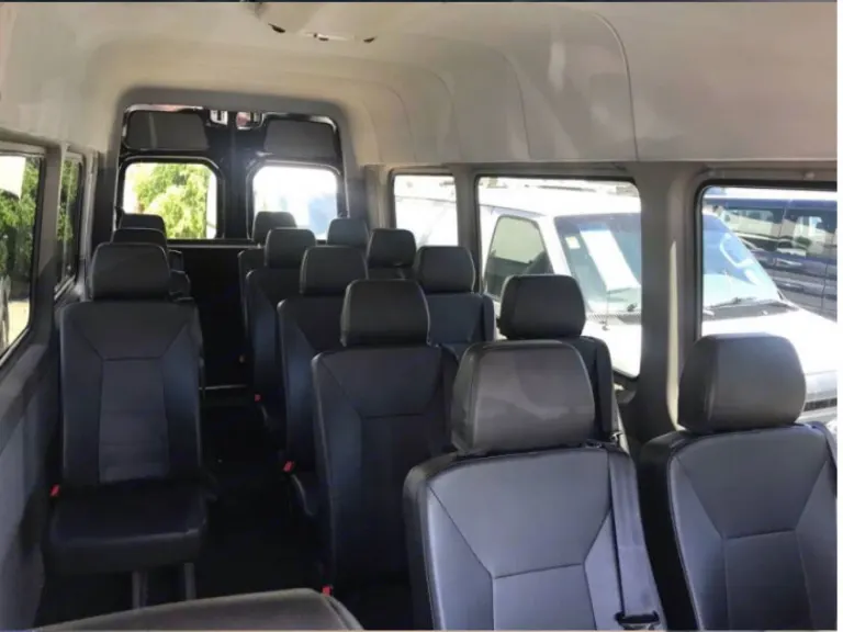 MB Sprinter 3500 diesel with a custom chassis. The front 2 seats are cloth, but the 13 seats in the rear are leather. 15 seatbelts. The floor has a custom liner and a hand rail at the side door. This 170 wheelbase has extra storage in the back. It also has a hitch and can tow up to 5000 lbs. gross weight. It has air conditioning and heat. What's includedThere is no bed, table, kitchen, or bathroom on board, but if you are looking for a comfortable way to transport a lot of passengers, this van is perfect for your trip.