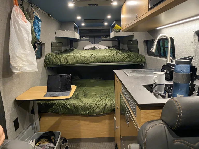 Bearhorn is a low miles 2019 Mercedes-Benz Sprinter 170 ext van. Featuring a custom, professional conversion fully equipped with 2 queen-sized beds inside, full pop tent on the roof, sink, induction stove, microwave, vitamin, refrigerator/freezer, ventilation, AC/heater, solar, external shower and air compressor. Tons of storage space in the garage for all of your adventure gear!This 4x4 rig is also jam-packed with high-end components. This diesel van is a dream to drive, with all the bells and whistles. This van is perfect for your ultimate road trip or dirt road trip.