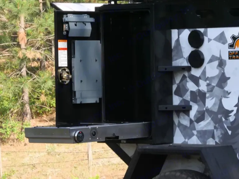 This Off-Grid Expedition 2.0 is the ultimate home base! Queen Size bed inside with heater and vent fan. Includes kitchen, 19gal water with instant hot, outdoor shower, 270 awning, and fridge, 31” all terrain tires and battery. Dry weight 1700lb. Please note insurance is required as is a brake controller on the towing vehicle. Please note that the tent on top is not currently installed on the trailer. What's includedTow at your own risk. Must have 7pin plug. Please note that the hitch should be 18" from the ground and proprietary mount is included in rental.RecommendationsThis is a great base camp for almost anywhere.Other things to notePlease note insurance is required as is a brake controller on the towing vehicle.