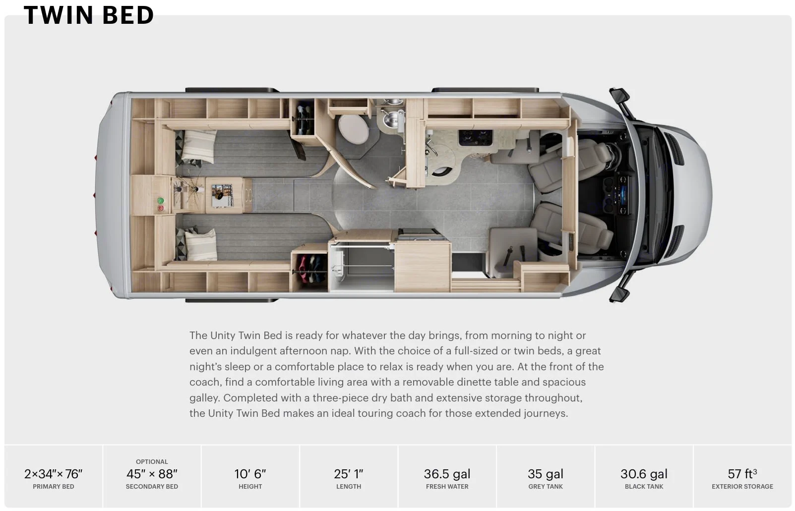 living area, the Unity U24IB or U24TB is the perfect touring coach