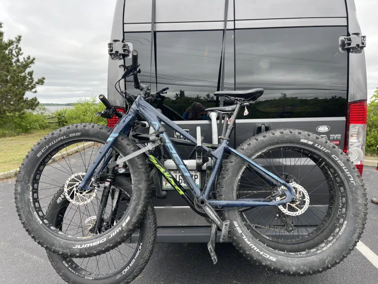 1-Up Bike Rack accommodates 2 regular and fat tire bikes