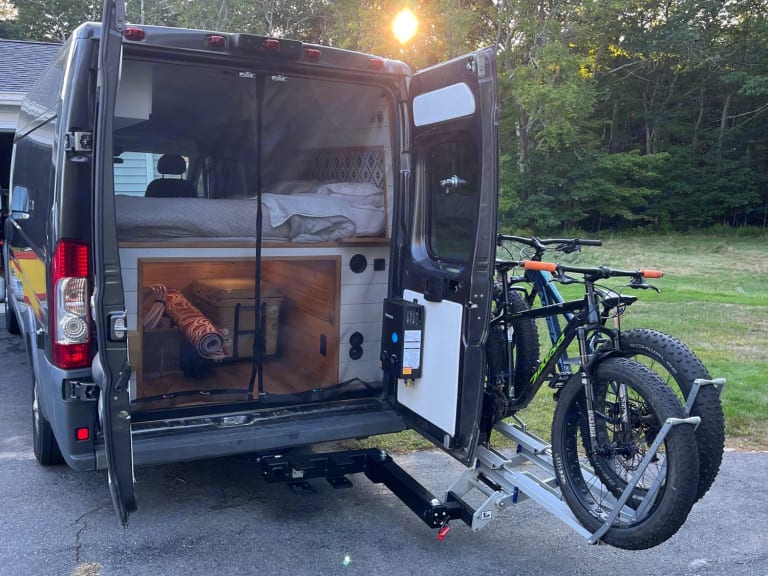 2015 Dodge Ram Promaster 3500 Extended. Bebe is her name. She was professionally converted in 2021, making it one of the most stylish vans you've seen! Clean and crisp, yet cozy and smartly designed. Bebe is fully equipped with a full-sized bed, U-shaped lounge that converts into a twin (plus) bed, kitchen sink with 5 gallon water storage tank, camp stove, 2 ventilation ceiling fans, diesel heater for fall and winter camping, solar panels, shore power, cassette toilet, outdoor heated shower (off back door) with 30 gallon tank (seasonal), with storage under seats, garage for further storage and more.The cassette toilet is there for you to use but in entirely your responsiblity to clean before returning the van. If you do not clean the toilet upon return, you will be charged a $200 extra cleaning fee.As of summer 2024, we are including a generator and propane with the rental. The van's battery that operates the lights, refrigerator, fans and outlets, seem to be not working as well as they once were. We usually rent the generator out for an extra charge daily, but because of this recent nuisance, we are including it for free. If you have options for a camping sight with an outlet for shore power, that might be preferred so you don't have to worry about running out of power.No pets, no smoking, please treat her kindly. She is our other home!*Please be advised that in colder months, the pipes and containers of water under sink get frozen, as we live in Maine. Purchasing water might be necessary for your trip and the kitchen faucet may not work. In addition, the water tank for the shower, will not be filled during winter months.Check Bebe out on Instagram "BebeTheVan"