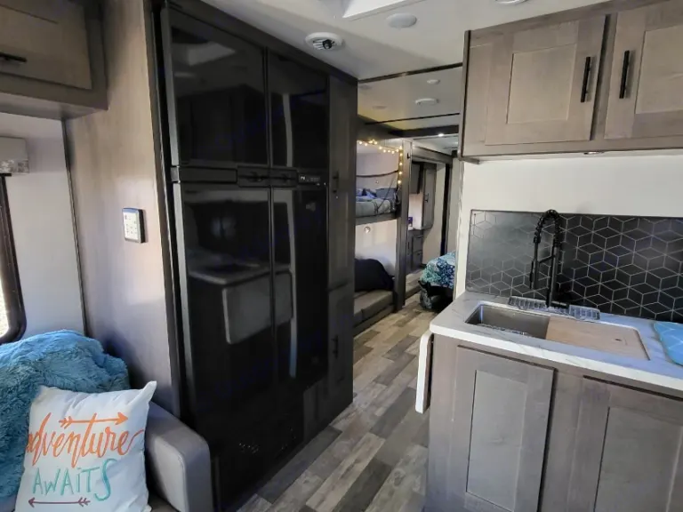 34 foot, easy to drive coach that sleeps 8 (combination of children and adults). Requires no special license or training to drive. Great storage inside and under coach. King size bed, bunk house, over the driver's cabin loft, couch and table beds as well. Coach includes everything you need to spend your days making memories and having adventures. Perfect for a trip with family and friends, a short getaway, a cross country adventure, tailgating or overflow for a large gathering at a home. Only dogs welcome with a $50 pet deposit and prior approval. No pit bulls due to insurance reasons. The coach is fully equipped with a full-size refrigerator and freezer, microwave, coffee pot, toaster, 3 burner stove, outdoor shower, tv and radio, 3 inside televisions with Roku sticks, and first aid kit. Bedding is furnished if requested, all other linens provided. Kitchen is stocked with plates, bowls, flatware, glasses and basic pots/pans. Bathroom is stocked with RV safe toilet paper, hand soap and RV cleaning supplies. Safety features include a road side safety kit, back up and side mirror cameras, as well as a tire pressure monitoring system. GPS system also included. Rental manual included for easy reference. Once you book with us we will gladly send you a list of what is included and recommendations of what you might want to bring. Coach is deep cleaned after each trip. All linens and bedding are washed on highest heat setting and all kitchen items are cleaned and stored until next rental. If coach is not returned in satisfactory condition, a $200 cleaning fee will be assessed. Renter must dump sewage tanks prior to returning and return with a full tank of gas as it will be full upon pickup. Unlimited mileage and generator use. We hope we have given you a glimpse of the fun and adventures that await you in our home away from home. We hope to be able to serve you.What's includedFresh linens, some firewood, 2 camping chairs, reusable picnic table cloth, plates, bowls, silverware, glasses, pots/pans, cooking utensils, coffee pot, toaster, trash bags, trash cans, phone chargers for iphones and androids, GPS tracker, flash lights, RV safe toilet paper and cleaning supplies. Delivery available within 120 miles for additional charge.Other things to noteNo cats (owner is allergic), No burning man or coachella. No border crossing unless prior approval given. No renting to extreme winter areas due to safety reasons.