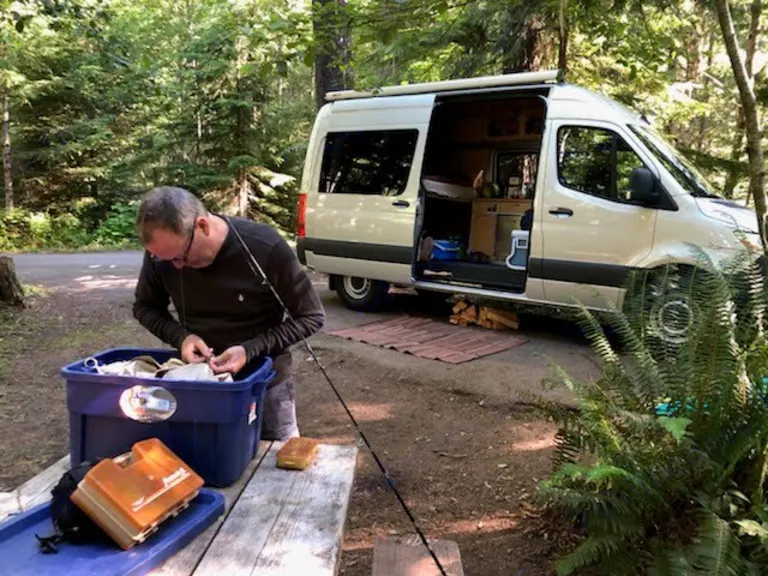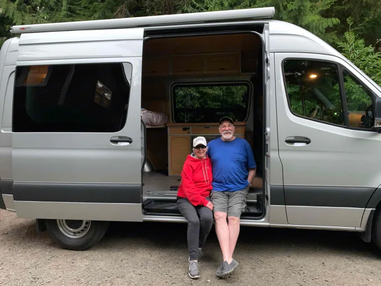 Skykomish is the newest member of the Peace Vans rental fleet. A 2025 Mercedes Benz Sprinter van with a deluxe internal build out and seating and sleeping for 4, Skykomish comes with all the awesome features and amenities you'd expect from Peace Vans. With a queen size bed for two in the main area and pop top bed that sleep two more, Skykomish is the ultimate family travel adventure van
