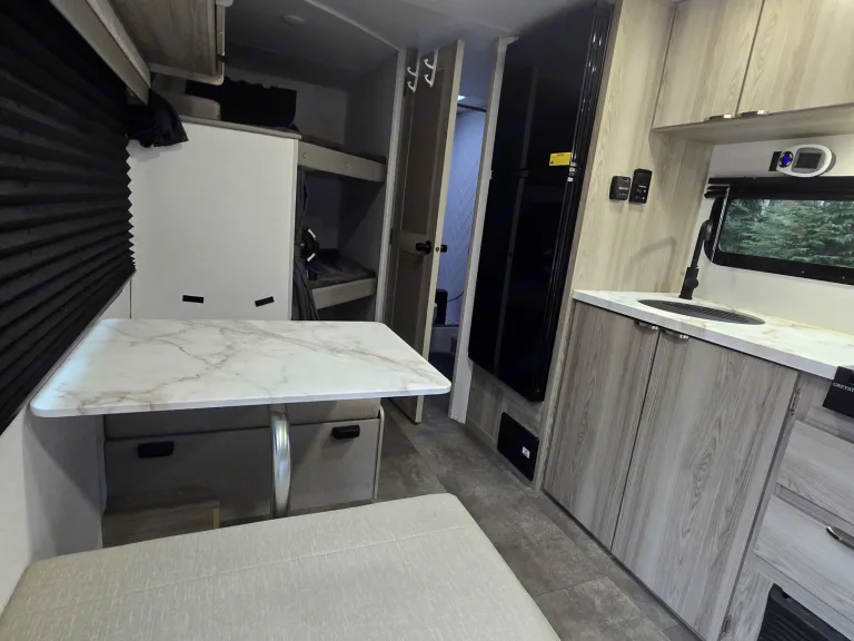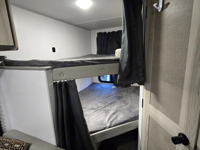 Newer camber modern design good for a family upto 7 and comfortably sleeps 5. One of the best light weight travel trailer can be towed by most trucks SUVs, thanks to the lightweight structure. Has everything you need. Ready to tow. 2 5/16 inch hitch ball.2 rear Bunk full size beds. Queen Murphy bed that can be fold up to a couch with an extra memory foam padding, dining table folds to a single. SmartTv + Antenna and cableready. Outdoor white porch light and strip white LED lights. Outdoor kitchen that includes portable dual grill/griddle and a mini fridge.Bluetooth portable speaker in and out. Auto awning. 13500 btu AC, 30 amp Suburban propane Heater. Tankless hot water, outdoor shower, and Outside Access storage space.For more details check the identical camper video below: