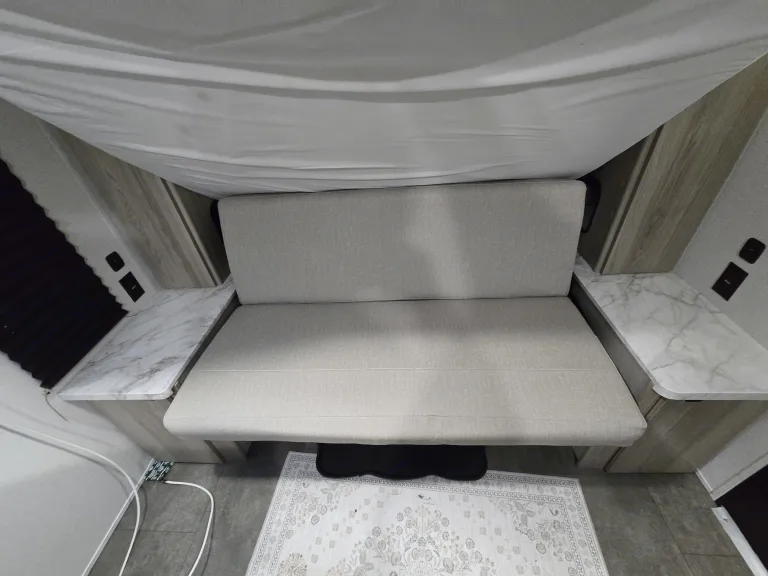 Other add-ons that can be requested 48 hours prior to trip: outdoor portable kitchen, camping foldable table with storage, and add-a-room for awning, and more.The queen bed is a comfortable mattress as for comfort. Bring your sheets pillows and blankets as needed.Pick up and drop off timings are standard but happy to work around your schedule to accommodate your timings pending availability.We anticipate that you will enjoy and take care of the camper as your own:)What's included• This will come standard with sewer hoses, freshwater hose, stabilizer jack pad, 30 amp power cord, two propane tanks, and kitchen utensils for three to four people