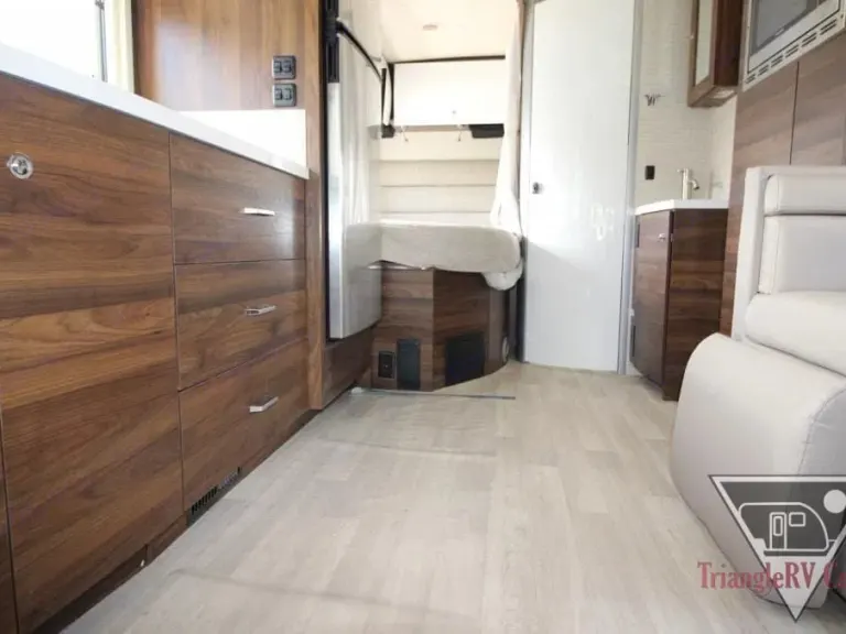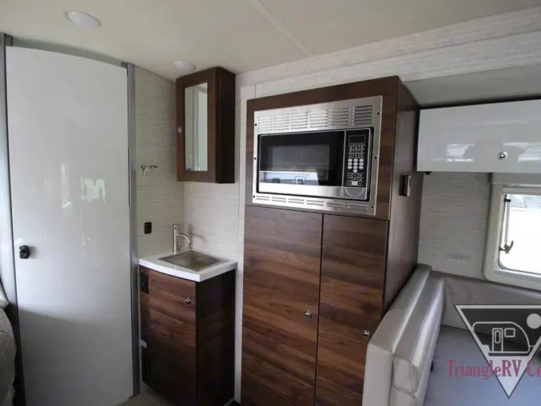 The 24J features an even deeper large slideout from 20 inches increasing to 30, with a large U lounge that provides the perfect dining solution, workstation, game table, and dual chaise loungers with the flip up ottomans!The 24J also includes a 10 cubic foot compressor driven double door 12V refrigerator and freezer! Replenishing the dual group 31 RV batteries are dual 100 watt solar panels, 200 total, which are also expandable! New is a 2,000 watt inverter to power household appliances!