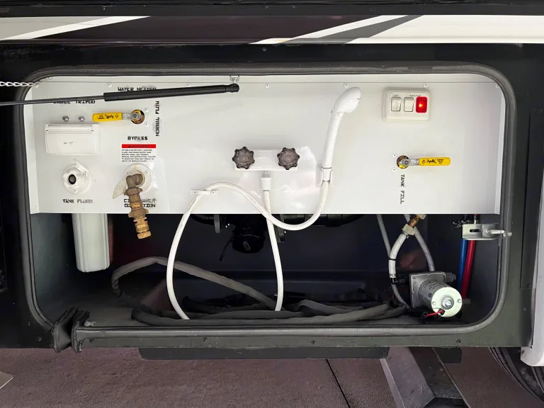 Tiffin makes their RV's very easy to connect all systems. *50AMP built in power cord for easy connect. *Fresh water hose provided to connect to city water or fill on-board 70 gallon tank. *Grey and black water tank drain hose provided. *Additional hose included for rinsing black tank at the end of your stay. *Hot water uses electric or propane. Electric is best where full hookups are available.