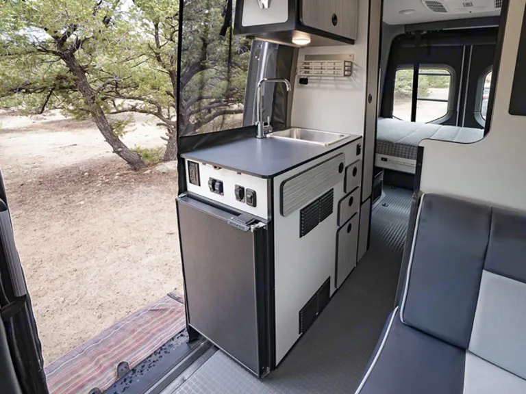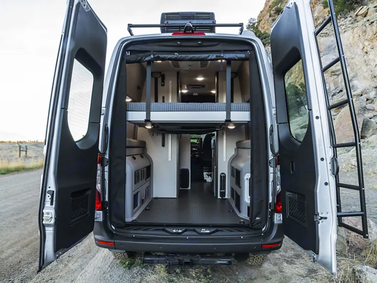 Mercedes 4x4 Sprinter 144 chassis, 6 Cylinders, Horsepower 188 hp, 24.5 gal Diesel Fuel, 7-speed automatic, Solar, plus additional High-speed Starlink Internet! All advanced safety features. This Queen can take you anywhere!After a long day of exploring, you can enjoy a hot shower indoors or out!The interior is complete w/ a portable induction cooktop for quick, efficient, & safe cooking, sink with hot/cold water, refrigerator w/freezer shelf, heating/AC, kitchen counter extension, magnetic screens for easy in/out while keeping the bugs out, awning controls w/LED lights & wind sensor! With a 320AH Lithium Battery System, 2nd alternator that acts as a generator (can recharge the battery within 2.5 hours of driving) plus the ability to plug into shore power, you’ll have plenty of juice to satisfy all your electrical needs during your adventure.Interior extras:
