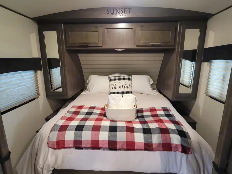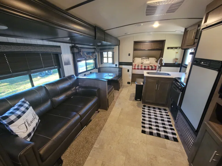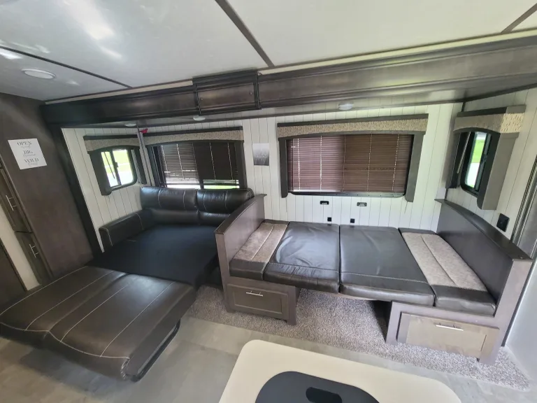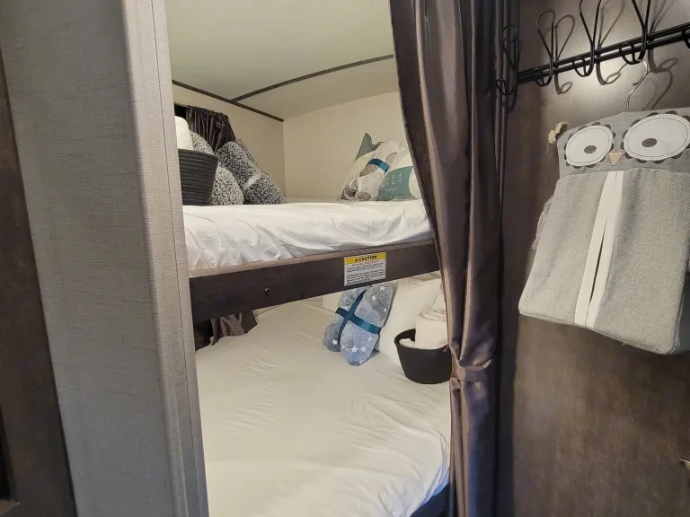 Outside, there is a large automatic awning with LED lights, outdoor kitchen with mini-fridge, and additional storage.What's includedWe'll include all the basics for you to enjoy our camper hassle-free. Kitchen will be appointed with cooking utensils, pots, pans, flatware, plates, bowls, cups, and paper towels. We'll include linens for the bunks and queen bed, along with extra blankets and pillows should you need to use the convertible sleep spaces. RecommendationsWe are conveniently located in the greater Orlando metro with Disney's Fort Wilderness, Ocala National Forest, Daytona / New Smyrna / Ormond beaches, Wekiva Springs, and a multitude of State and County parks with campgrounds (Trimble Park, Kelly Park, Rock Springs Run, Blue Spring) as well as several RV resorts all within a short drive. Other things to notePlease no smoking or vaping, our family will continue to enjoy this RV for years to come :)