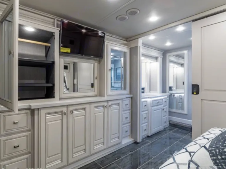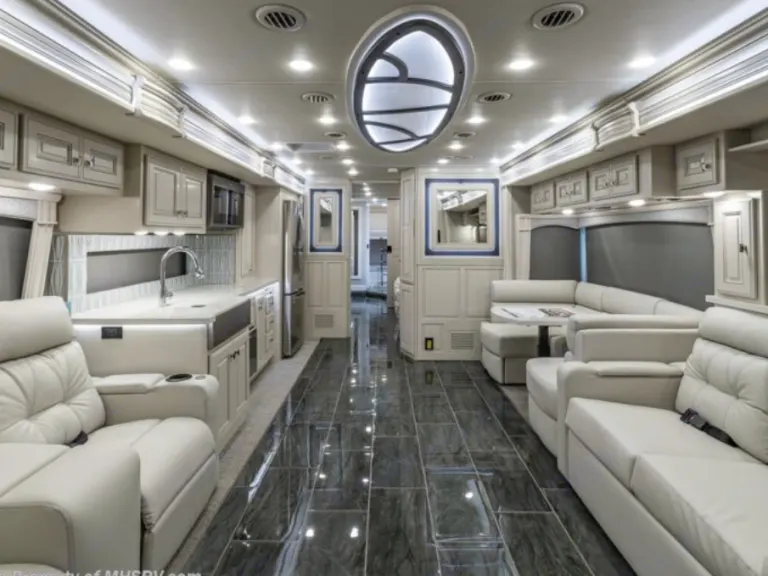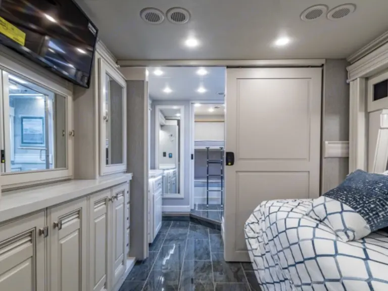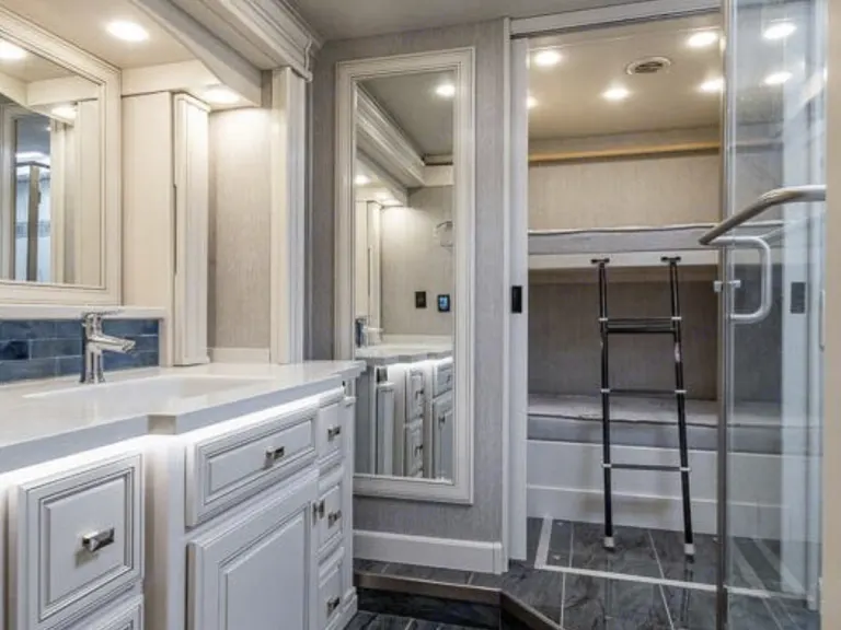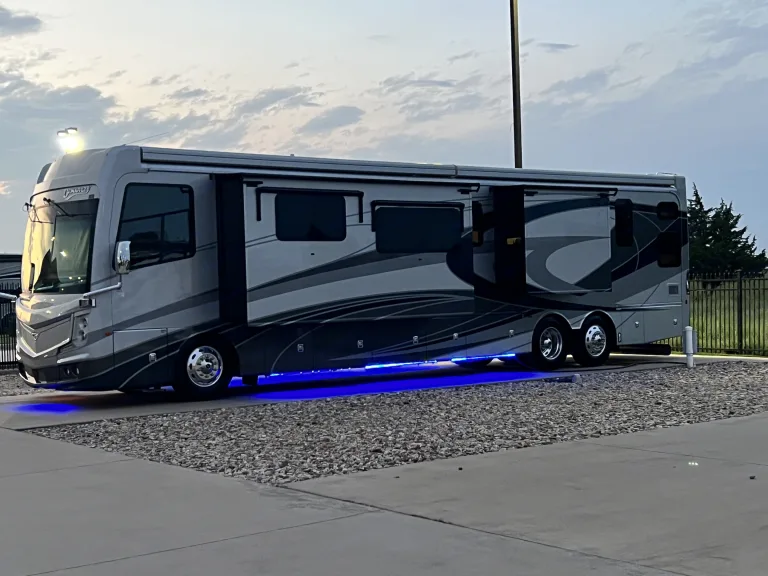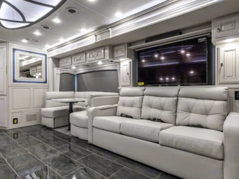 Beautiful 44' Coach. Open floor plan with a very unique bunk room in rear of the coach. Lots of storage inside and plenty of space to move around. Kings size bed in the master, a drop down queen in the front, pull out hid-a-bed sofa and a dinette that converts to a sleeper. There are 4 large screen TV's, Dish Network Satellite, Washer/Dryer, 1.5 baths, What's includedCoach rental includes fresh linens, towels, wash cloths, plate settings for 4, pots and pans, and a variety of cooking utensils.Other things to noteA Class A or Class B endorsement on your Texas Drivers License is required to drive this coach. If you do not have one of those endorsements, then Delivery is the only option we can accept for a rental.