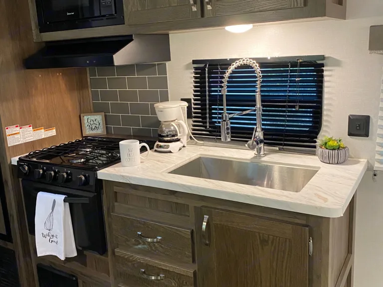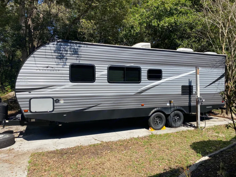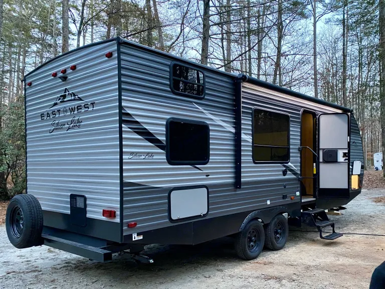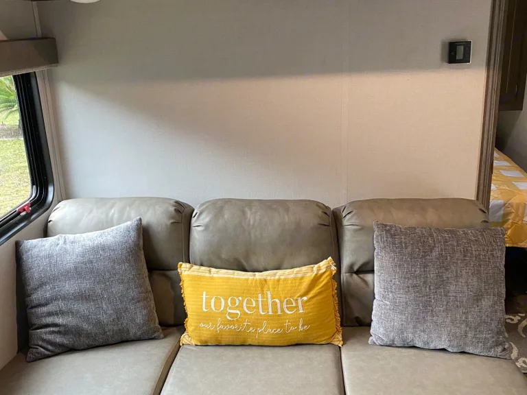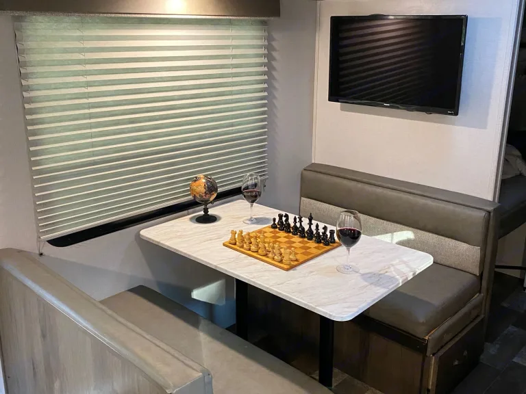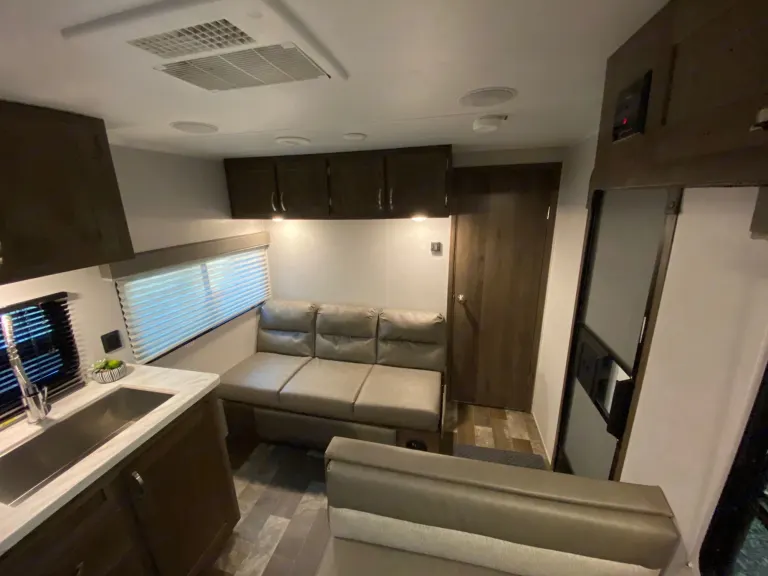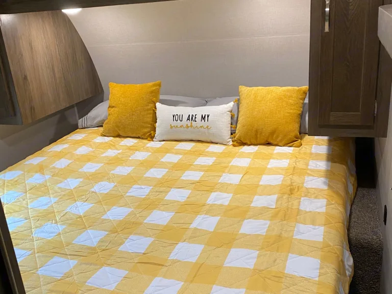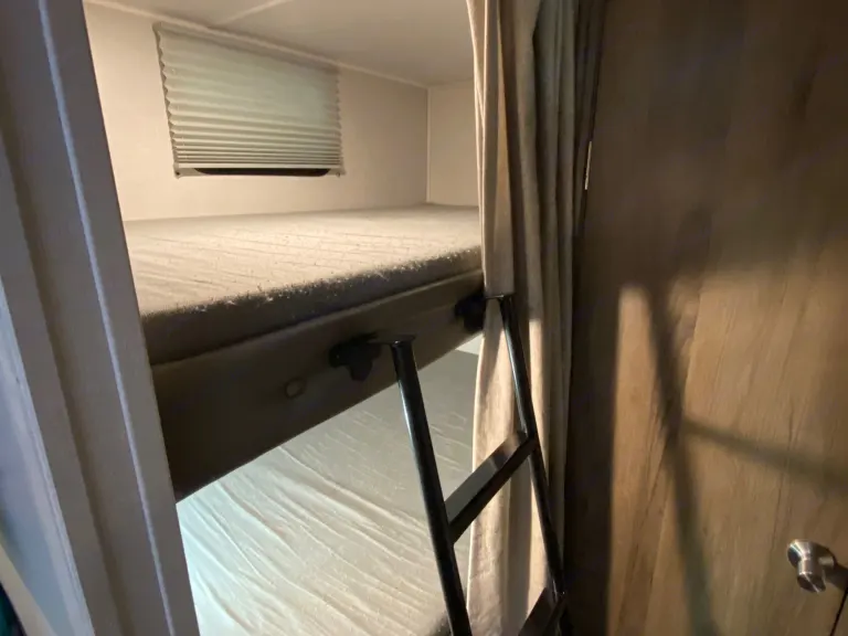 This spotless, easy to haul camper has a lot to offer! With room for up to 8 guests, the opportunities are endless. Wether you’re hanging out under the retractable awning or relaxing inside the spacious rig, you will be comfortable. The double bunks, dinette, pull-out couch, and king sized bed offer plenty of room for everyone to stretch out.The kitchen includes a three burner stove with oven, microwave, large sink and plenty of storage. The two mounted smart tvs are in the perfect locations for entertainment.One of our favorite features is the master suite which has a king sized bed, mounted smart tv, and a Door so you can have have your own tv show playing without disturbing the other guests. This suite also has his and hers closets for hanging items you may not want to have folded in your luggage. This has worked great for keeping everything in its place when it’s time to get dressed for different activities.This rig comes stocked with linens, towels, dishes, cookware, silverware, coffee pot, and cups. There are outdoor folding chairs for your use in the storage compartment at the front of the camper. We also keep a few family games stocked in the cabinet above the dinette. We hope you’ll enjoy our little camper as much as we do.What's includedLinens