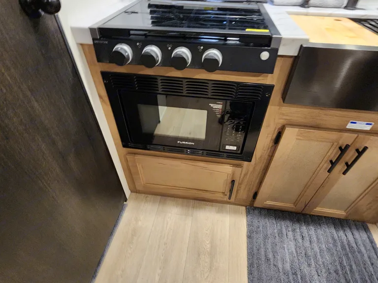 Kitchenette with fridge, microwave, stovetop, and sink