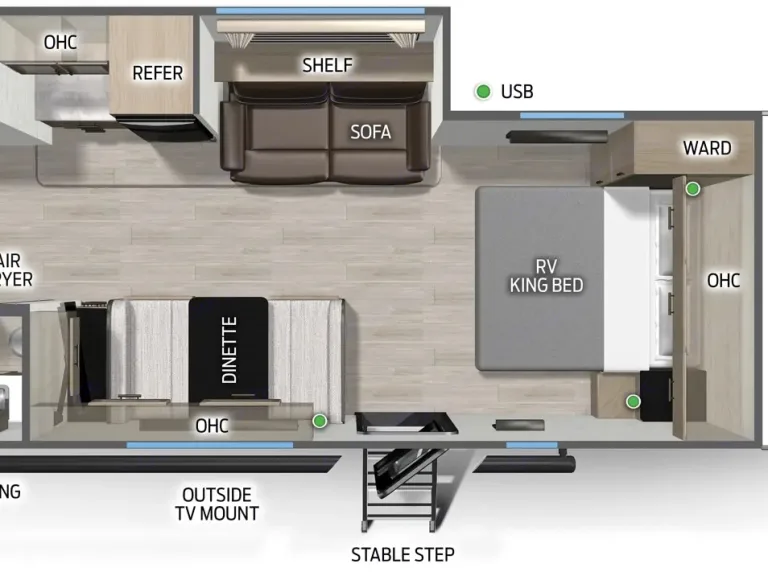 • Smart TV's in the living area, with Antenna/Cable / Satellite connections if the campground has that
