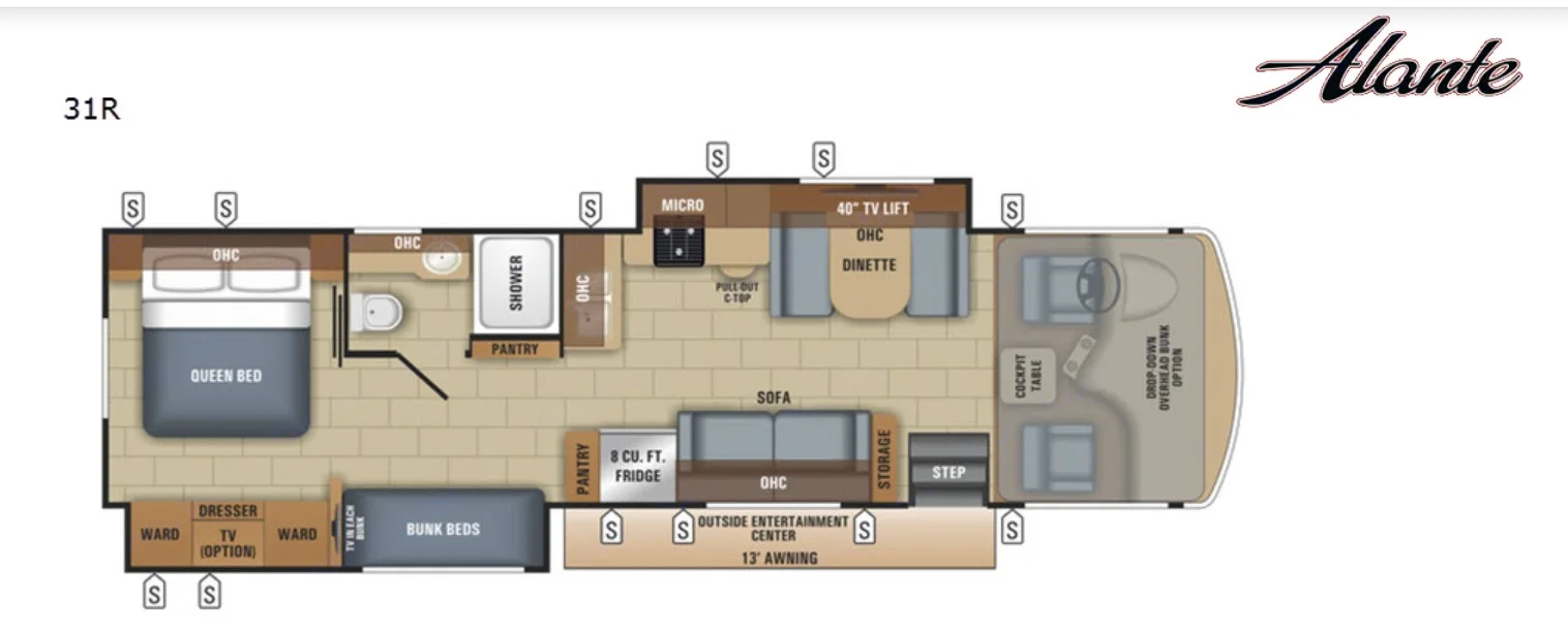 Discover this 2018, 34-foot Jayco Alante Class A motorhome for your travels