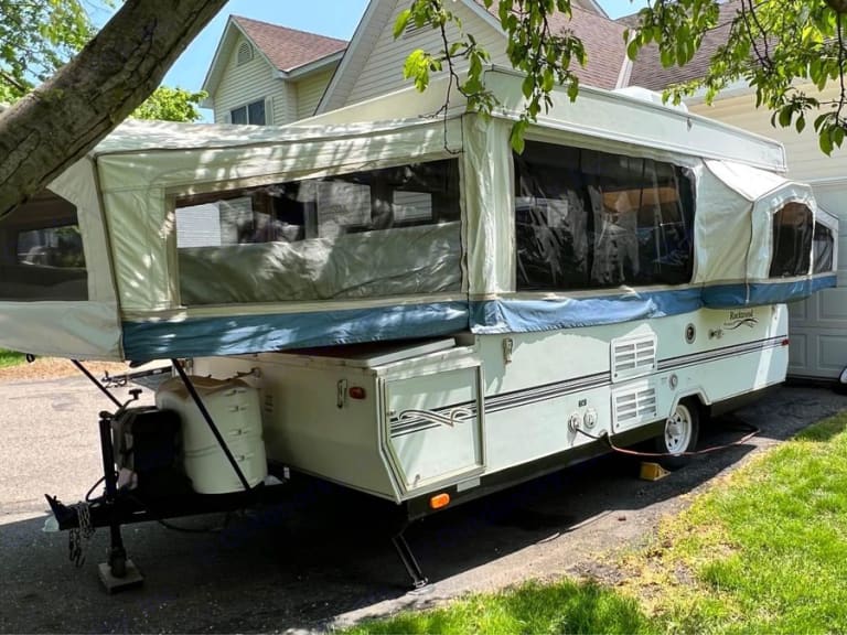 Rocky is a 2004 Rockwood by Forest River Premier Series M-2307. Very comfortable and spacious. Bonus -- all systems are operational! That means you have a working sink, refrigerator, heater, heated king and queen mattresses (really!), and air conditioning.With 2 seating areas in the camper (that can be converted to beds) and privacy curtains for each slide-out bed, your group can make the space you need. There's also an exterior fold-out table.A full-width storage compartment carries Rocky's essentials, and leaves room for your storage needs, too.Your tow vehicle needs a 2-inch ball hitch and 7-pin electric hookup. If you camp without an electrical hook-up, pack lanterns and/or flashlights: the camper does not run lights on battery power.Rocky is ready! He'll bring the comforts you may need for a truly memorable getaway. What's includedWe provide a fitted sheet on each slide-out bed, outdoor mat, interior power strip to plug in to electrical service, drinking water hose to connect to a park's supply, gray water hose to connect to sink drain system, spare tire.See Add-Ons section to bring a dog, rent a propane tank, and camping chairs. RecommendationsStart with the basics to ensure comfort for the campers-less-traveled: find a park that provides water and electricity, and either has a dump station or a sewer connection at the lot you're renting.Additional items you'll need to supply: bed linens, cooking pots/pans, plates, and other eating utensils as needed.Rocky opens up for nice breezes, zips up tight when it's raining, and can keeps warm or cool to your liking.Other things to note$50 additional per house-trained dog. No cats or any other type of pet.Rocky is over his party days so no festivals or party scenes. Sorry, my dude.$75 cleaning fee if Rocky isn't returned the way he left.Plan on 45 minutes, give or take, to be trained on the how-to of correctly opening up, operating, and closing down Rocky.