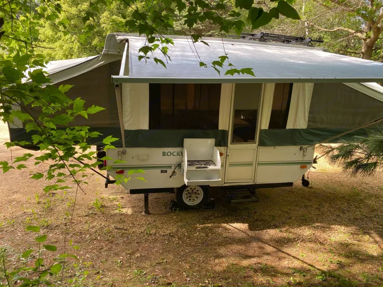 **Note: camper requires a 4-pin connection on your tow vehicle to operate running lights and drive legally**Ready to camp more comfortably than in a tent? Check out this remodeled 2006 Rockwood popup camper. 10 feet long folded down so it’s easy to tow; expands to a spacious 20 feet with two bunk ends and ample storage when all setup.Includes:(2) Heated mattresses, 60x80” on one end, 40x80” on the other.Carry out LP camp stove (2-burner)3-way fridgeBunk lightsAwningOnboard water tankFurnace(1) 20 pound LP tankGenerator available to rent.What's includedDelivery/pickup available upon request (see charges). Generator available to rent. Other things to notePlease return the camper as clean as when you picked it up. No smoking please. And make sure to have fun!