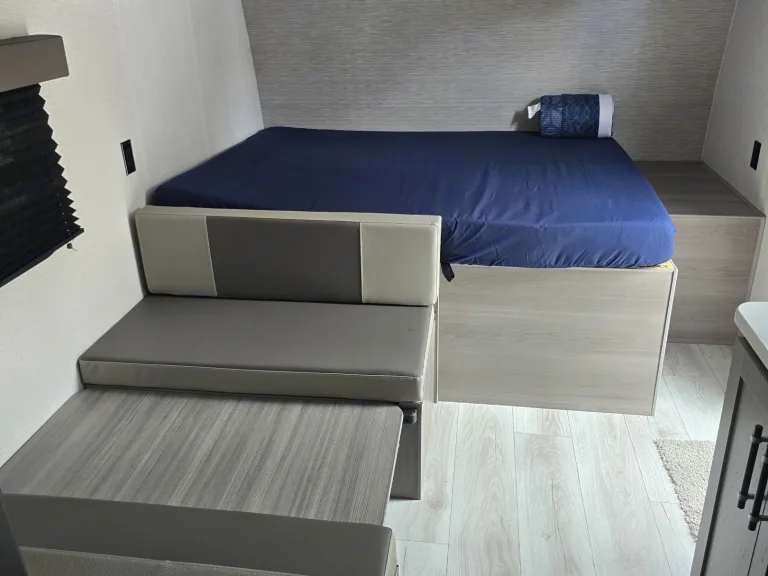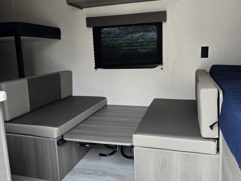 brand new trailer ready for your family to enjoy the outdoors. With the Dryweight being under 5000 pounds, this trailer can easily be pulled by a 1/2 ton truck or any suv that can pull 5000 lb. This trailer has an open floor plan, double bunks, queen master bed, dining table lalso turn into bed. Also has an mini fridge and stove. electric awning with LED strips porch lighting. Trailer comes with all connections necessary for full campground hookups. What's included hitch ,Clean, sanitized unit Fresh linens Clean towels Rv toilet paper Plates, cups, bowls, and utensils (plastic and Paper) Pots and pans 4 camping chairs Extra blankets TV outdoor table outdoor 1burner stove Please do not put anything else down the toilet. Anything other than RV toilet paper (feminine products, wipes, paper towels etc) can clog the system and will result in a minimum $300 fee being deducted from the security deposit. Trailer must be dumped before returning or an addition $75 will be charged.We have a strict no smoking policy. This includes cigarettes, vapes, and marijuana. This is to ensure a clean, welcoming trailer for every guest. Violation of rules can result in losing the full deposit. Please treat our trailer like it’s your own. We want to make sure every renter has a great experience. We understand being in nature will always cause require some degree of cleaning afterwards, but additional cleaning fees will apply is there is excessive deep cleaning needed.