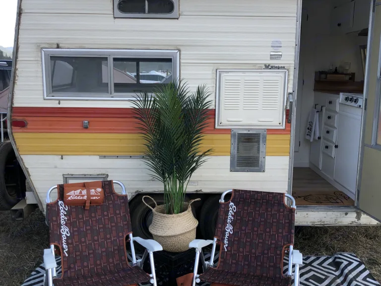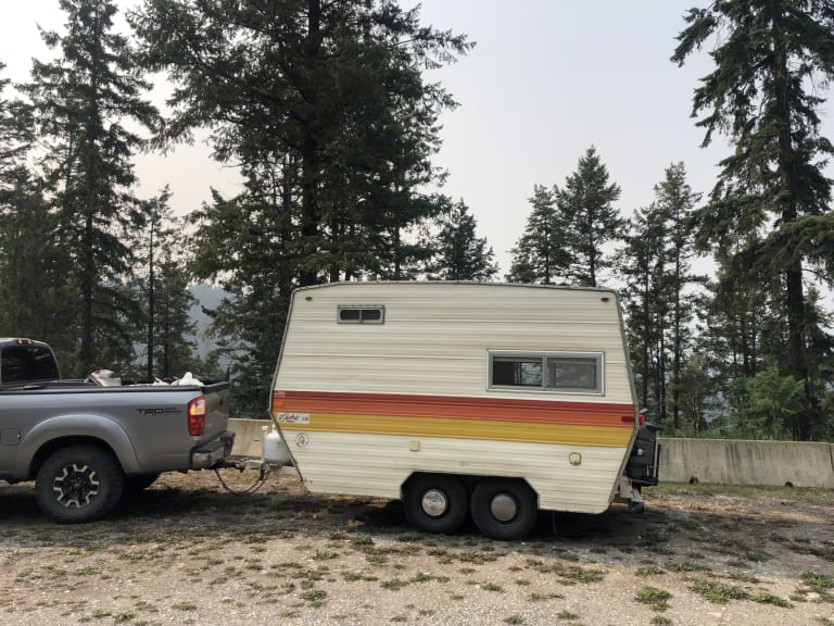 Wonder what it’s like to live in a vintage travel trailer? Rent our vintage 1976 Skylark travel trailer!! Pickup and dropoff is 7 minutes from Sicamous, BC.This trailer is double axel, and is Super easy to trailer and maneuver!!The fridge is super cold. The coffee is hot. The bed is ridiculously comfortable! It has been gutted inside and has new floors, countertops + fresh paint.The old school fridge works like a charm! It will keep your drinks and food super cold.The stove has 3 burners and the kitchen is fully equipped for you to cook whatever you are craving!3 way ~ Propane, Electric and BatteryWe provide coffee and propane!There is a cute carpet and chairs setup outside the trailer where you can enjoy your morning coffee, read a book or enjoy a sunset beer.There is no air conditioning, but the trailer is equipped with a small fan!There is a large water jug which you can fill once you arrive at your destination. There is no toilet, shower or sink - so it’s a bit of a rustic camping experience, but trust us, has all the little luxuries that will make it an amazing experience!!Please message if you have any questions!What's included• Fully equipped kitchen with pots, pans, plates, cutlery and glassware