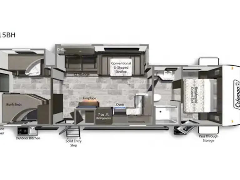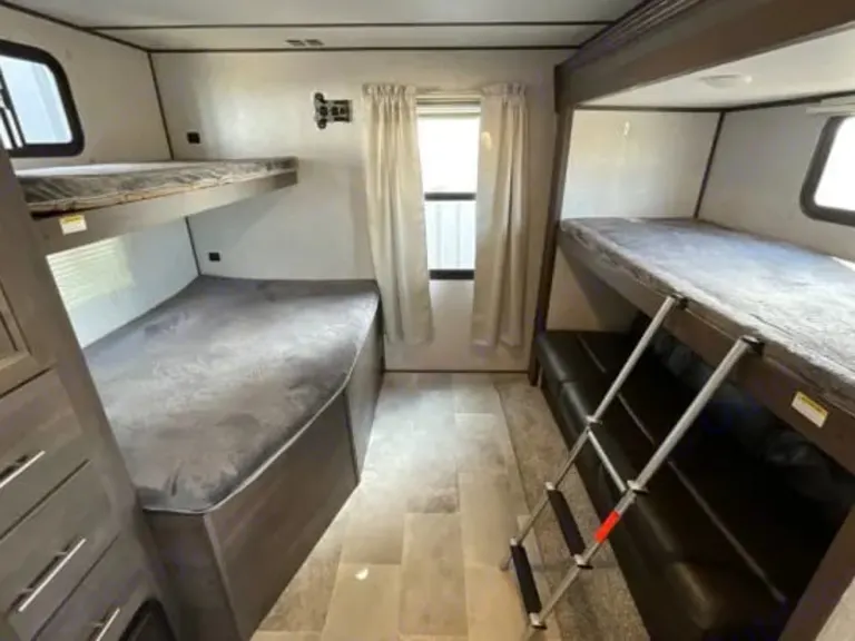 Experience the epitome of comfort and convenience with our 2020 Coleman Light 3215BH Travel Trailer. This spacious RV is your ticket to unforgettable adventures, offering luxurious amenities and ample space for the whole family. With a master bedroom, bunkhouse, and convertible sofa, it comfortably sleeps up to 8 people. Equipped with a fully functional kitchen, including microwave, stove, and refrigerator, meal preparation is a breeze. The bathroom features a shower, sink, and toilet for added convenience. With its sleek design and modern features, this Coleman Light ensures a memorable and enjoyable journey wherever the road may lead.Why Rent With Us?Support: Unlike private parties, we offer support with RV techs on standby to assist with any issues. At Fireside RV Rental, your camping success is our only priority.Professionalism: Managing campers is our job, not a side hustle. We have a full staff dedicated to ensuring your getaway is flawless.Quality: We only rent out campers in pristine condition, with detailed inspections and thorough cleaning procedures after each rental to guarantee your satisfaction.Security: Renting with us means your trip is protected. Avoid the uncertainty of renting directly from private owners who may cancel last minute or provide poorly maintained campers.Choose any of our many RV's for a premium outdoor experience, backed by professional service and support. Book now and step into a world of adventure, comfort, and peace of mind.What is included in my rental? Have no fear, our campers come fully stocked for your ease and convenience.The following list of items will be in the RV for you to use during your trip:1. Pots and pans2. Camp friendly dishware (durable plastic)3. Camp friendly silverware (durable plastic)4. Serving trays5. Oven trays6. Garbage cans and garbage bags7. Air and surface sanitizing spray8. Cleaning supplies9. Hose for fresh water10. Sewer and elimination kit, RV safe toilet paperDon’t have a truck? No problem! We do! We offer delivery, setup, and pick up services with all of our RV’s. When you arrive at the RV, or the RV arrives to you - our dedicated staff of setup professionals will get your rental RV set up, leveled, hooked to power/water/sewer (when applicable), and take you through a full walk through either in person or digitally, to ensure that you have the best experience possible.Questions? Feel free to send us an inquiry today and we will be happy to answer any questions that you could possibly have.