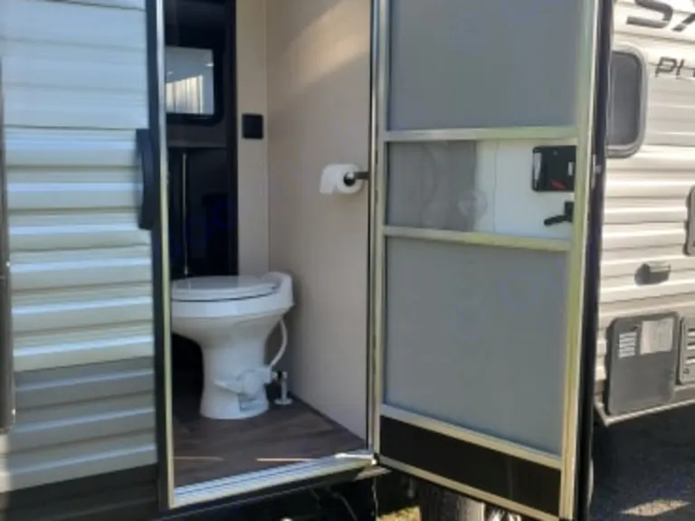 Small with Slide Out feels bigger in side, Light Weight,so easy to tow, Can use my sway bar system like if you like. Come fully loaded with anything you might need. Just bring your food and clothes and enjoy..What's includedFresh linens, Full bedding, Camping chairs and mat, Full dishes pots and pans, Coffee making, toaster, and all other essentials you might need for camping.