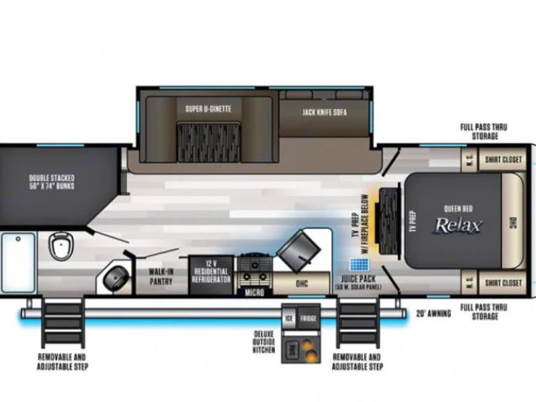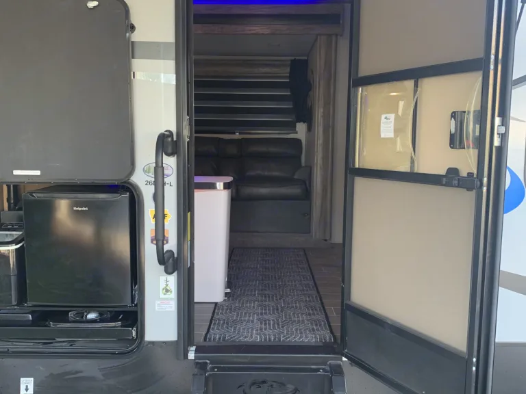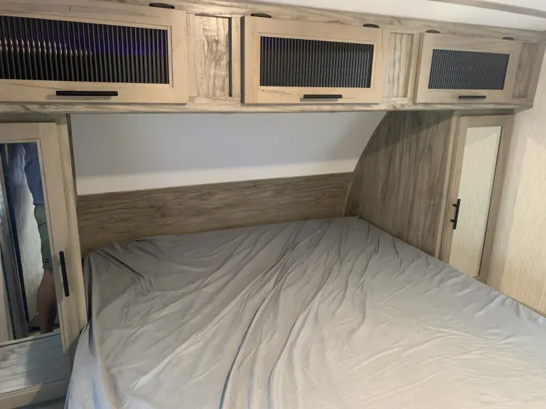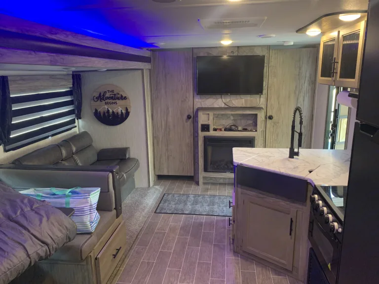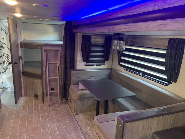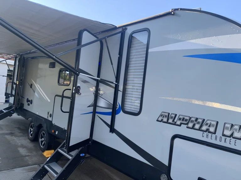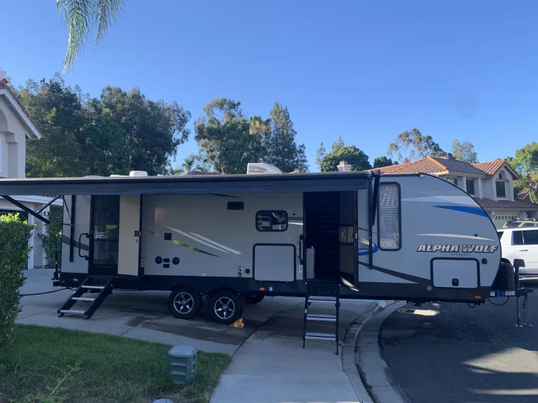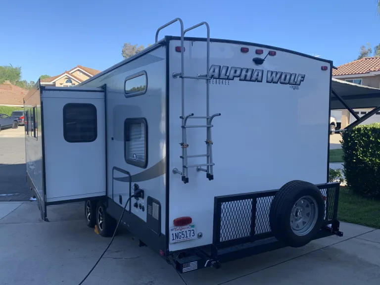Alpha Wolf is Perfect for family get-a-ways, bunks beds in back can for two small children on each or 1 adult on each. Dinette converts to bed and also sofa-sleeper. Farmhouse sink, LED accent lighting inside and out, outdoor speakers. TV can be mounted outside from the inside location. Hardwood flooring throughout. 30amp A/C and electric fireplace. Electric jacks and stabilizer. Electric awning. Too much to list. Delivery Only! Must Have Full Hook-UPS! No Festivals and No Desert.What's included4 camp chairs, two camp loungers, two camping tables, cookware, utensils, sewer hose and wheel chalks. 2 full propane tanks, power cord and water hose. outdoor artificial grass rug. Pets extra $50 cleaning fee. (add-on fee) Will delivery to Vail lake and lake skinner (add-on fee)Other things to noteNo roof top access!!!! Absolutely no smoking or vaping inside. Security deposit will be forfeited!