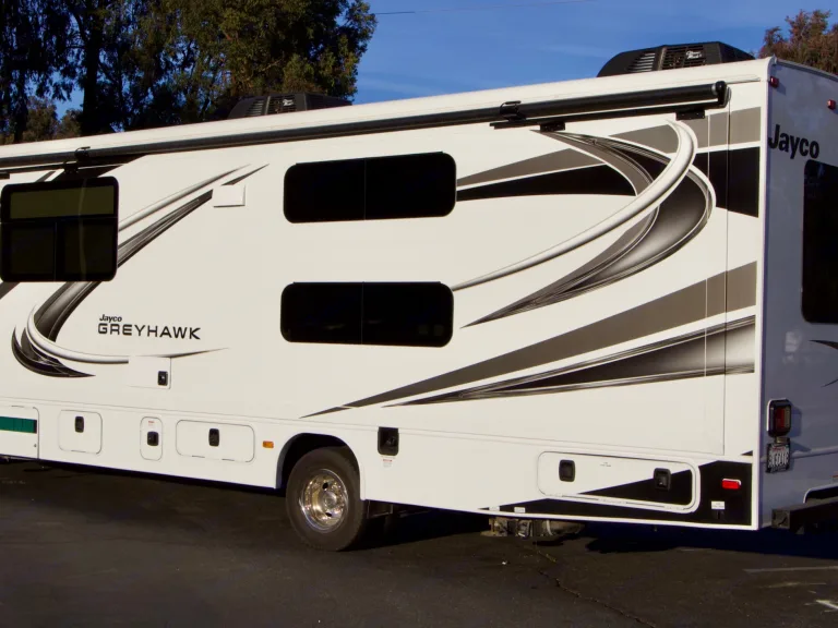 The Just Right Jayco is a new 2021 Jayco Greyhawk. RV is very clean and user friendly. Features automatic leveling, push button awning, one large full wall slide out, exterior speakers, and enough room to comfortably sleep 6-8. RV has a comfortable queen bed in the master bedroom, bunks for the kids, large bunk over cab, and sofa and dinette that can also be converted to sleeping areas. RV features a TV in the common area, master bedroom and a TV in each bunk. The RV is easy to drive and features the Ford Godzilla V-8 motor which does not sacrifice power but makes it better on fuel than other RV's of similar size. RV is equipped with a generator and two air conditioners for those hot summer days!What's includedRV comes with pots, pans, cooking utensils, plates, cups and plastic cutlery. RV also has a Zero Water pitcher, and coffee maker. There will be 4 rolls of RV safe/septic safe toilet paper provided and paper towels. Also included are 6 camping chairs, camping table, horseshoes and clean sheets- you will need to bring your own bedding and pillows.Optional amenities include: