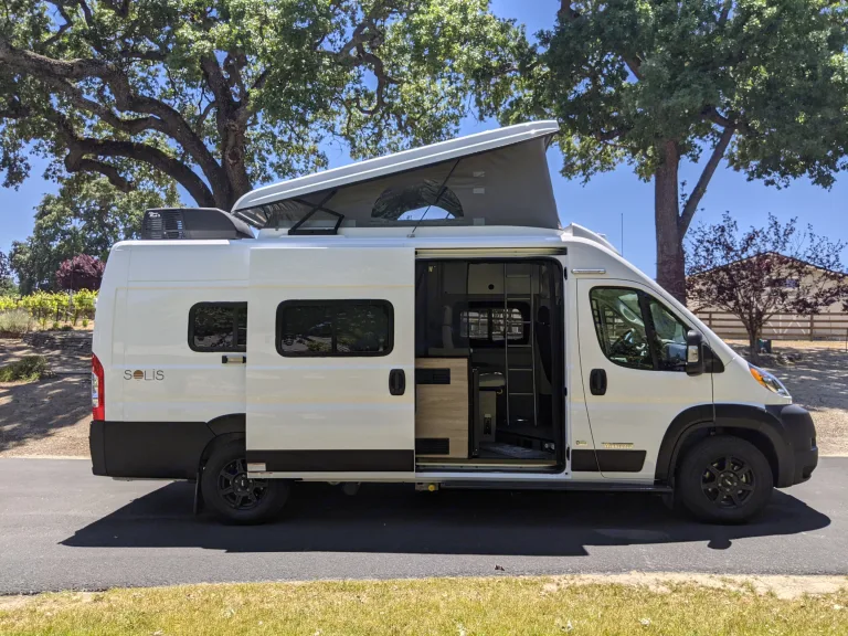 Lila is a 2022 Winnebago Solis 59PX that sleeps and seats four. This campervan is self-contained and is setup for dry camping or RV park stays with 30 amp service. The unit is 21' and is really easy to drive and park.The unit has a generator for dry camping that will run AC and 110v outlets and solar panels on roof top that will recharge the house batteries. The unit has indoor shower with cassette toilet (wet bath) and outdoor shower too.
